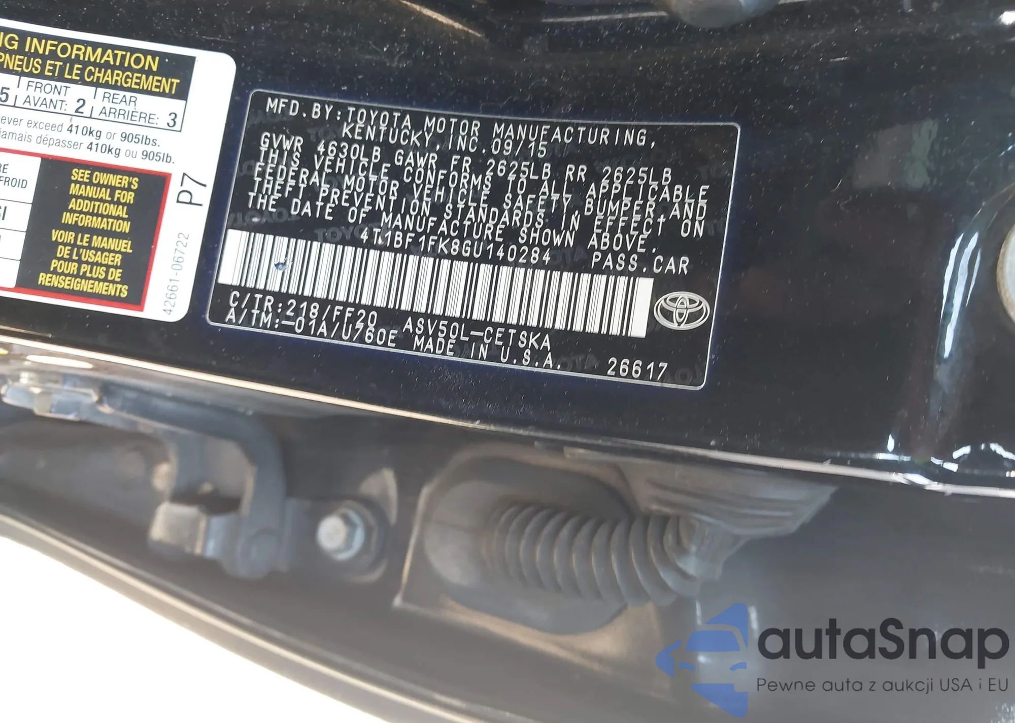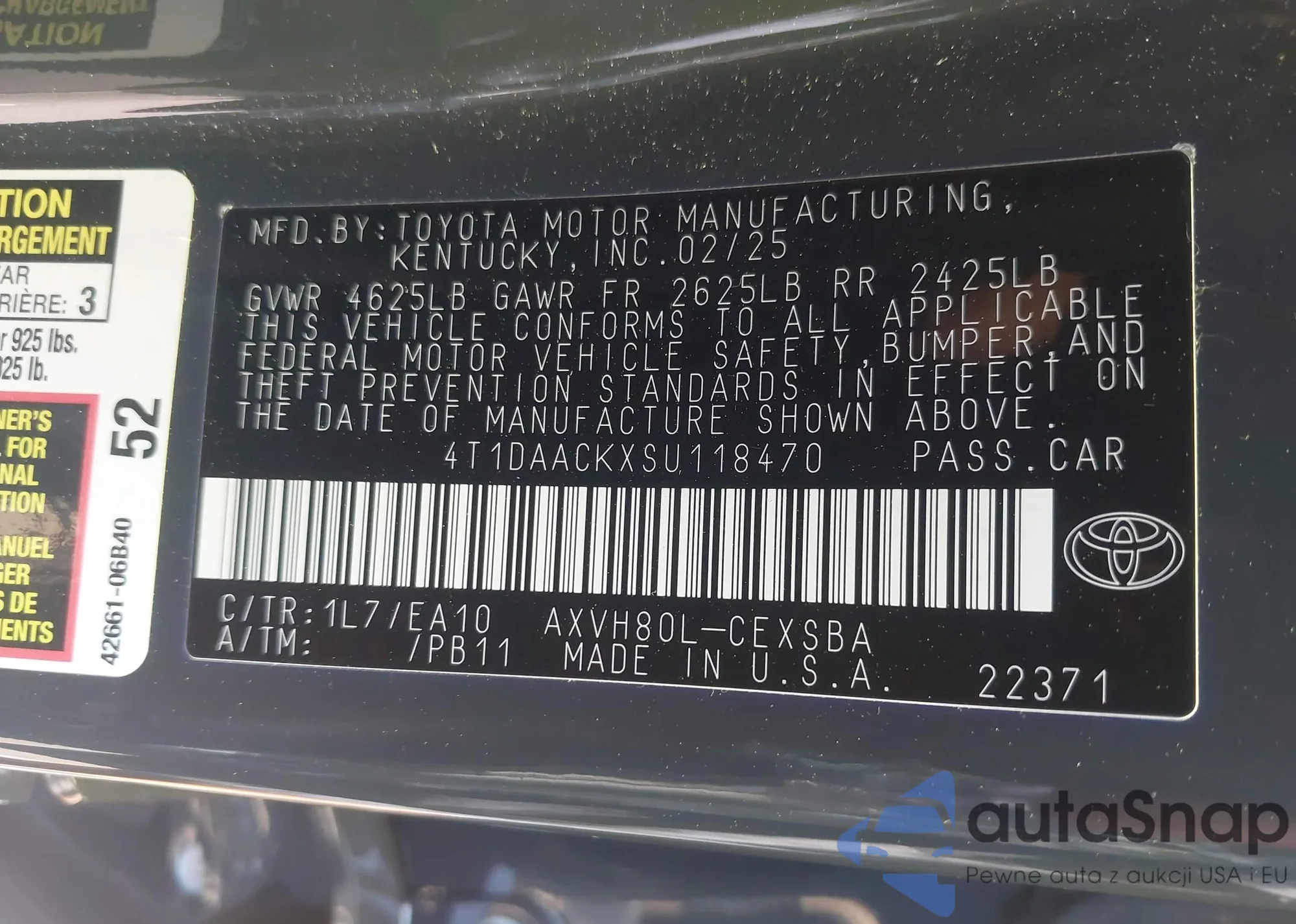 • VIN 4T4BF3EK6AR077535