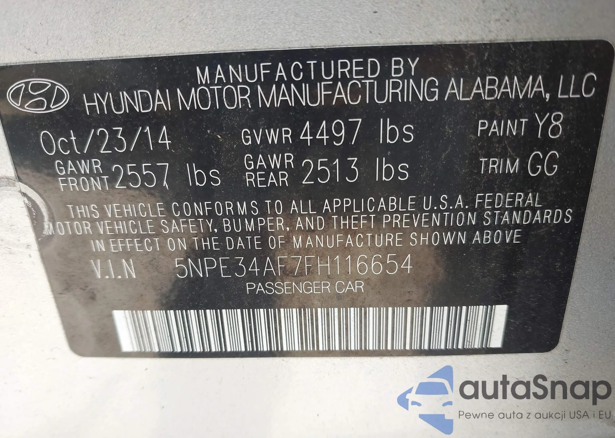 LOT: 43168973 VIN: KMHCU4AE3CU069776