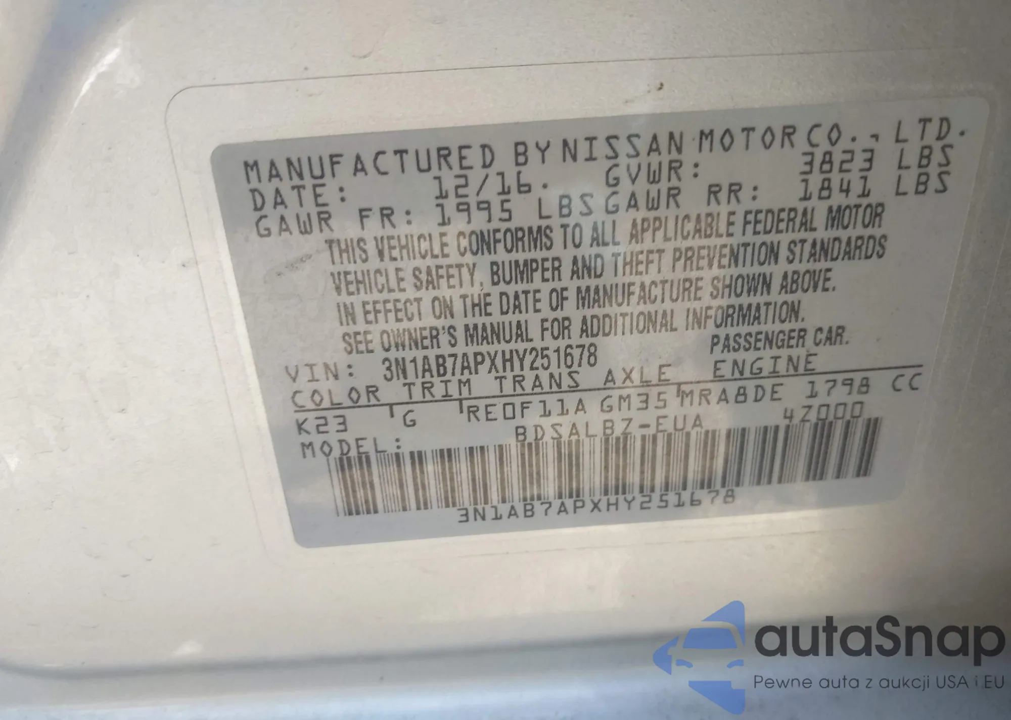 • VIN 3N1AB7APXHY251678