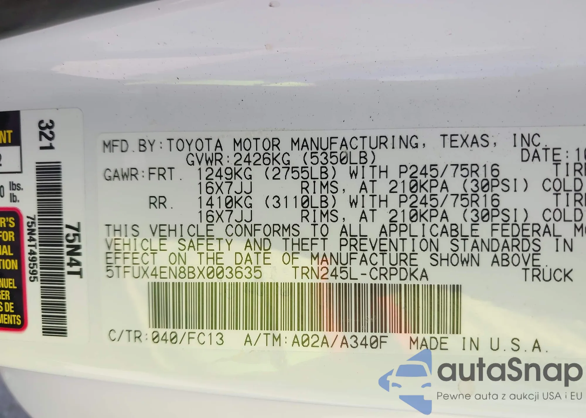 LOT: 43252097 VIN: JTMZF4DVXA5023356