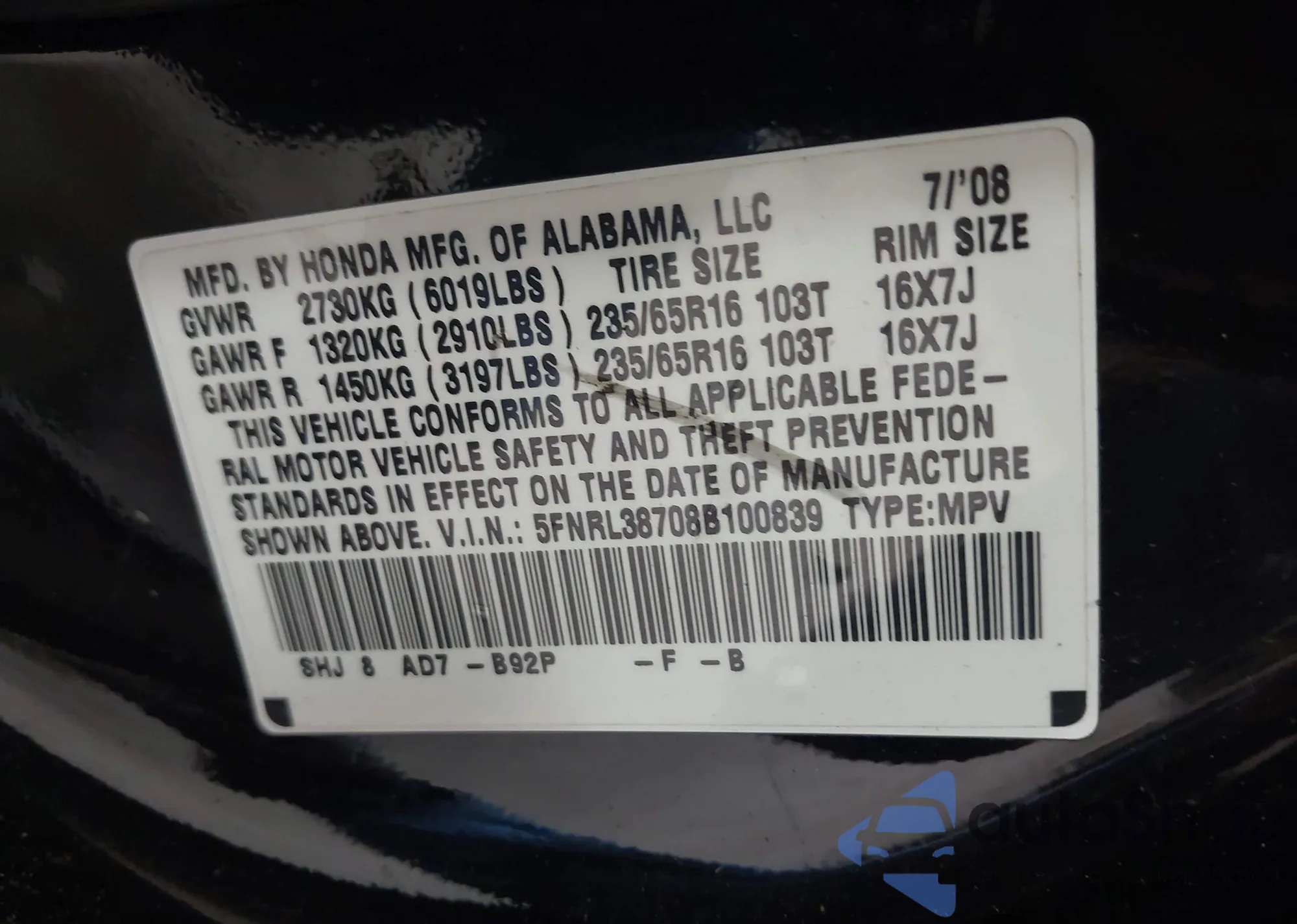 • VIN 5YFB4MDE2RP194320
