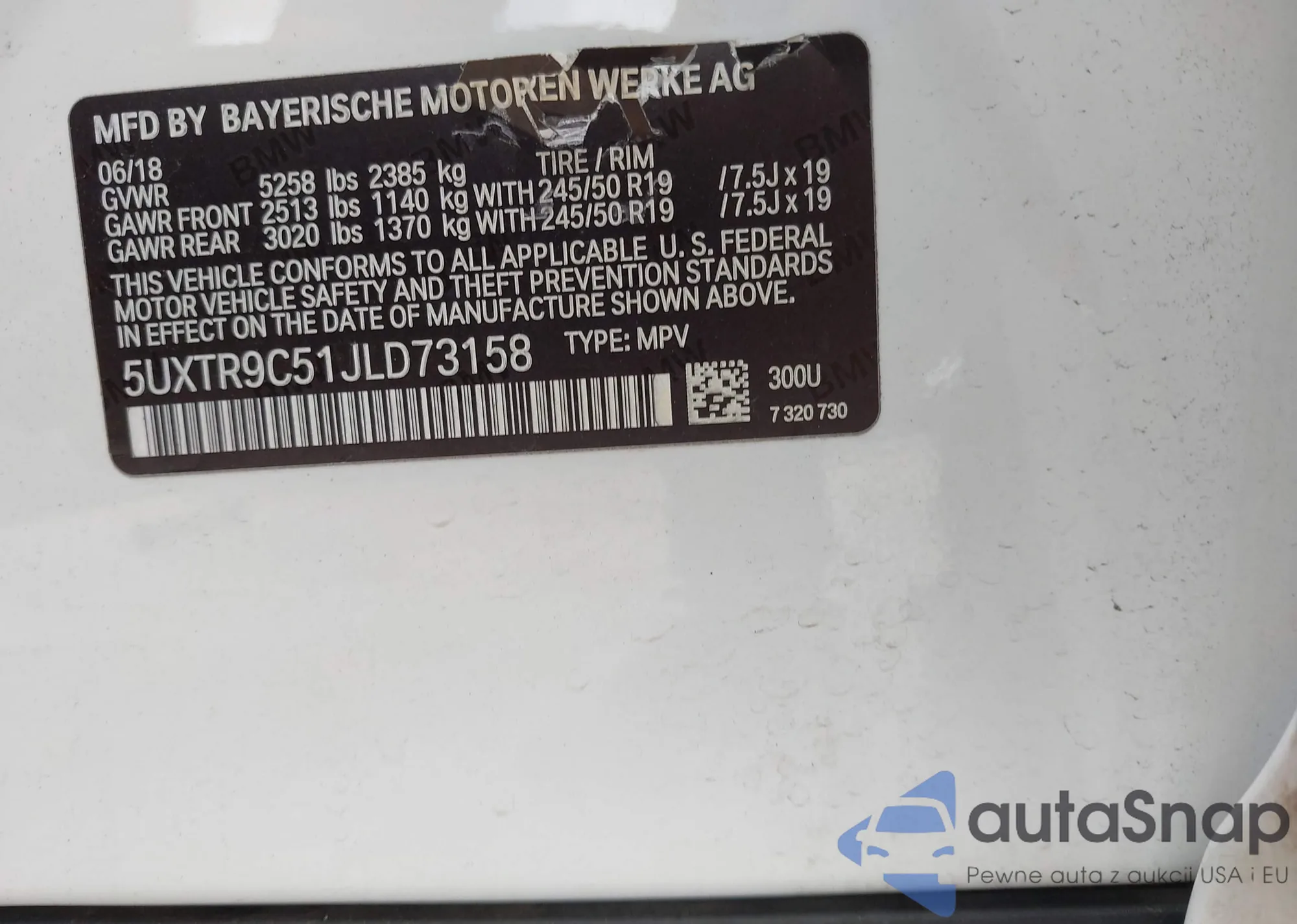 2018 BMW X3 xDrive30I from USA, damaged, VIN 5UXTR9C51JLD73158