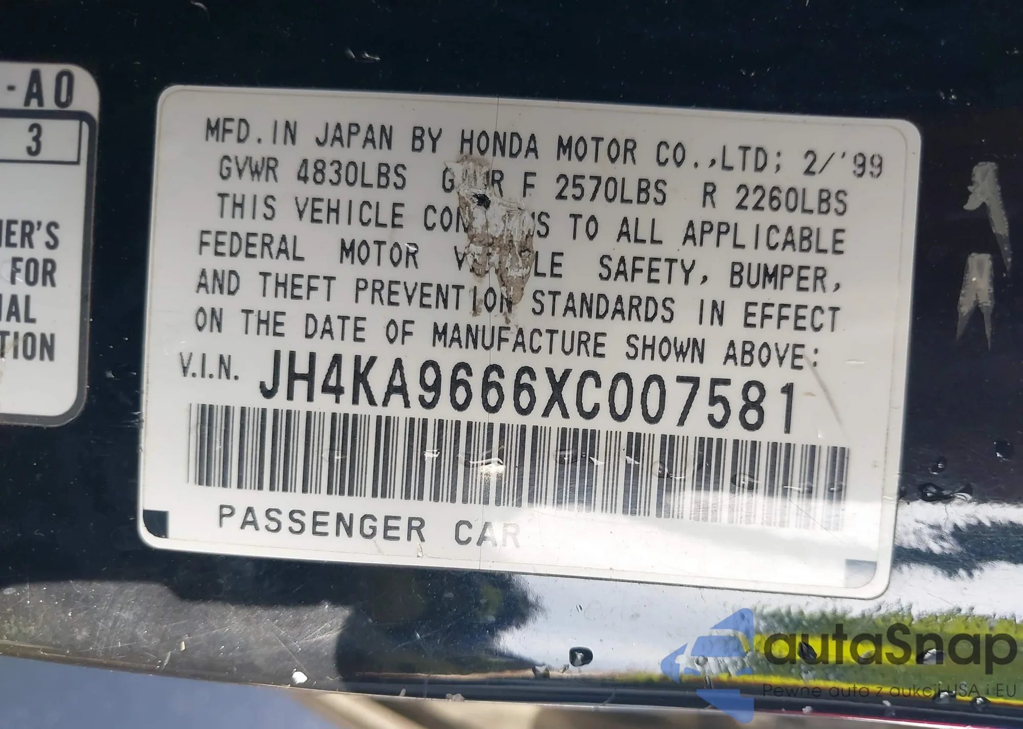 • VIN JH4KA9666XC007581