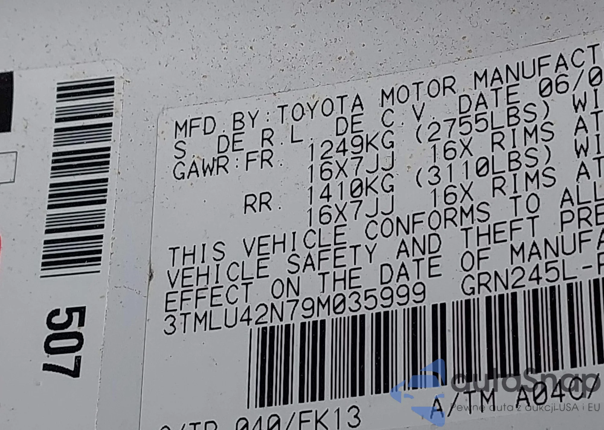 • VIN 3TMLU42N79M035999
