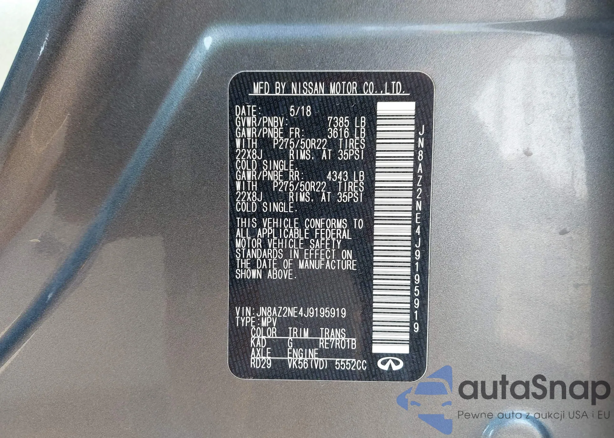• VIN JN8AZ2NE4J9195919