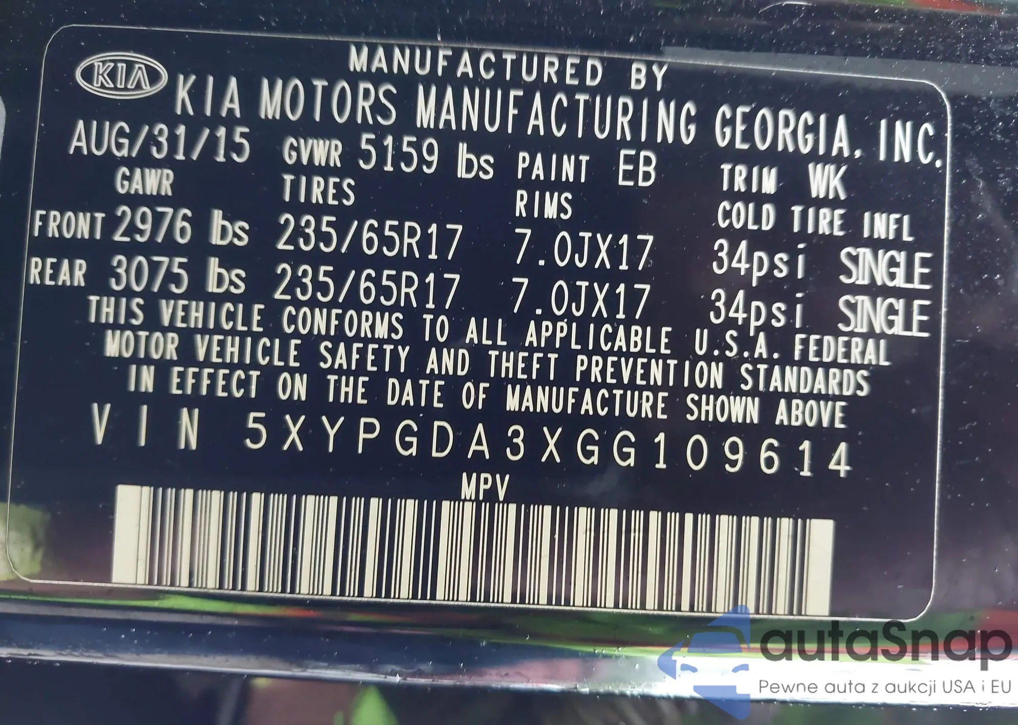 LOT: 43237892 VIN: 5XYPGDA3XGG109614