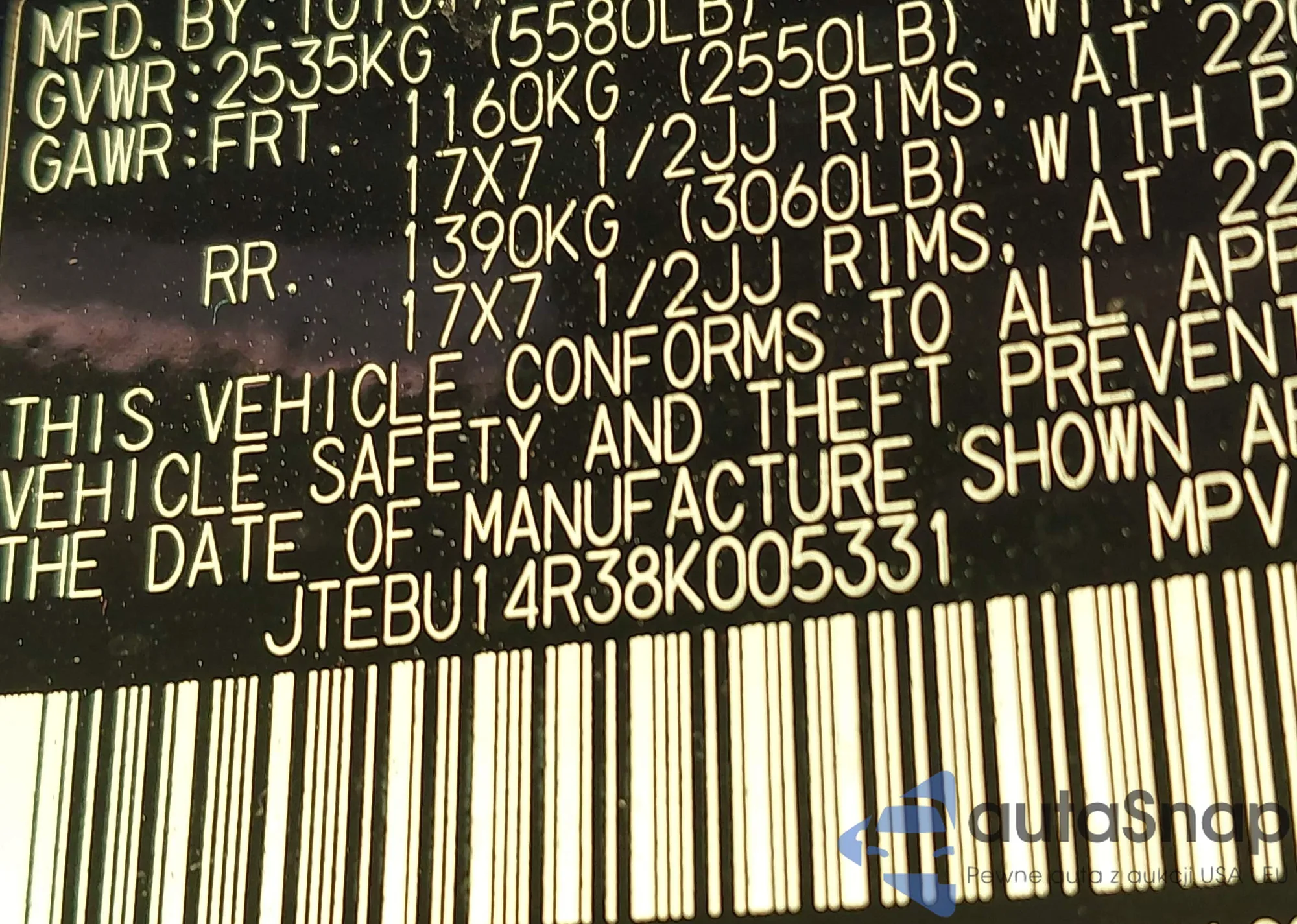 • VIN JTEBU14R38K005331