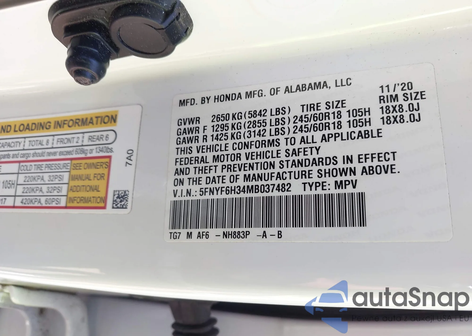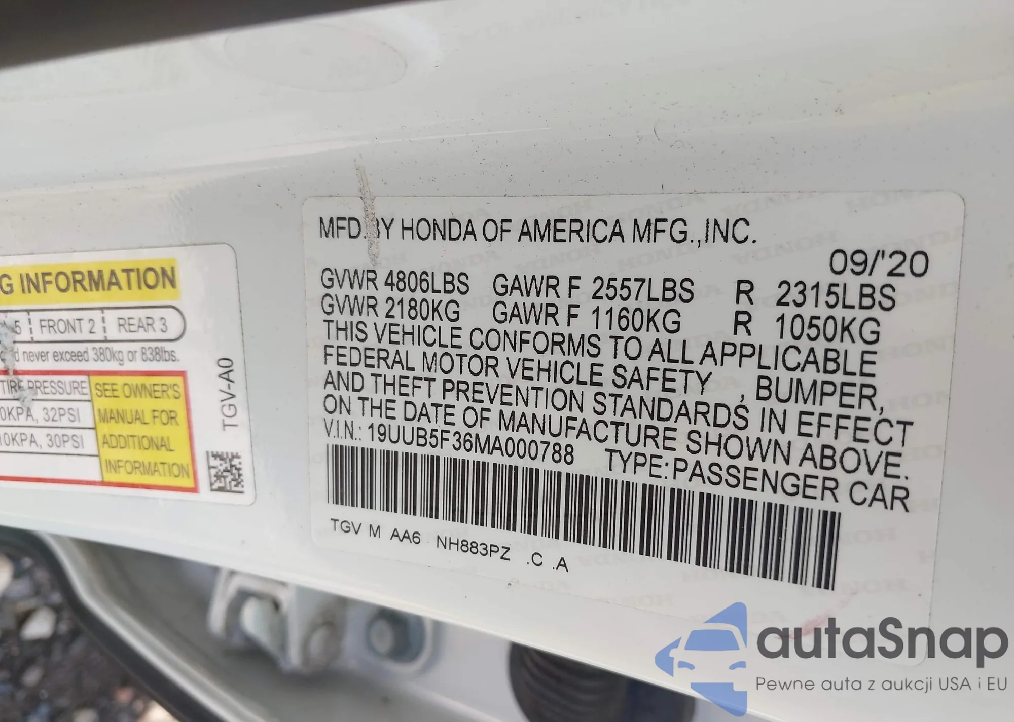 LOT: 43275615 VIN: 1HGCM56787A064876
