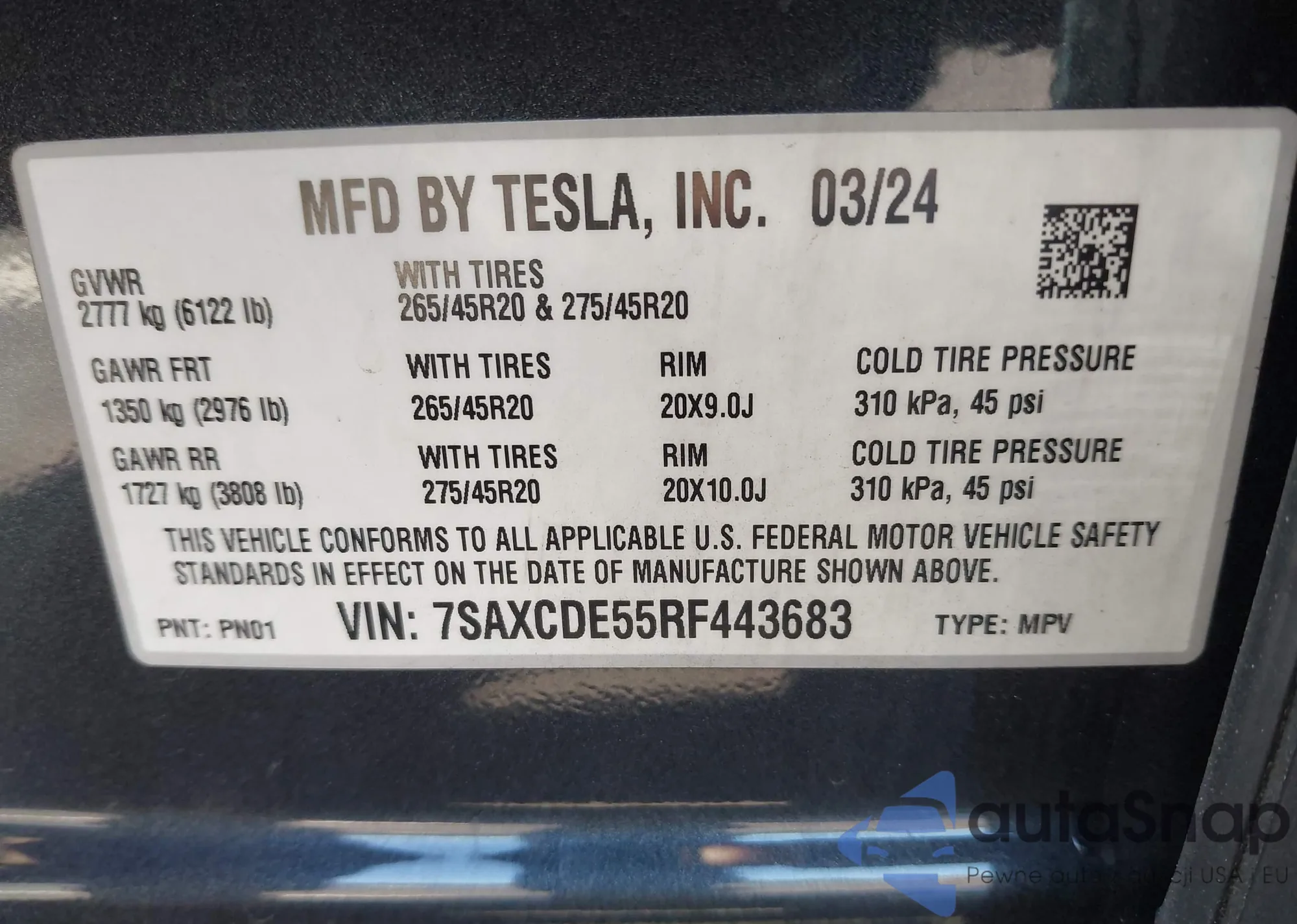 2024 Tesla Model X from USA, damaged, VIN 7SAXCDE55RF443683
