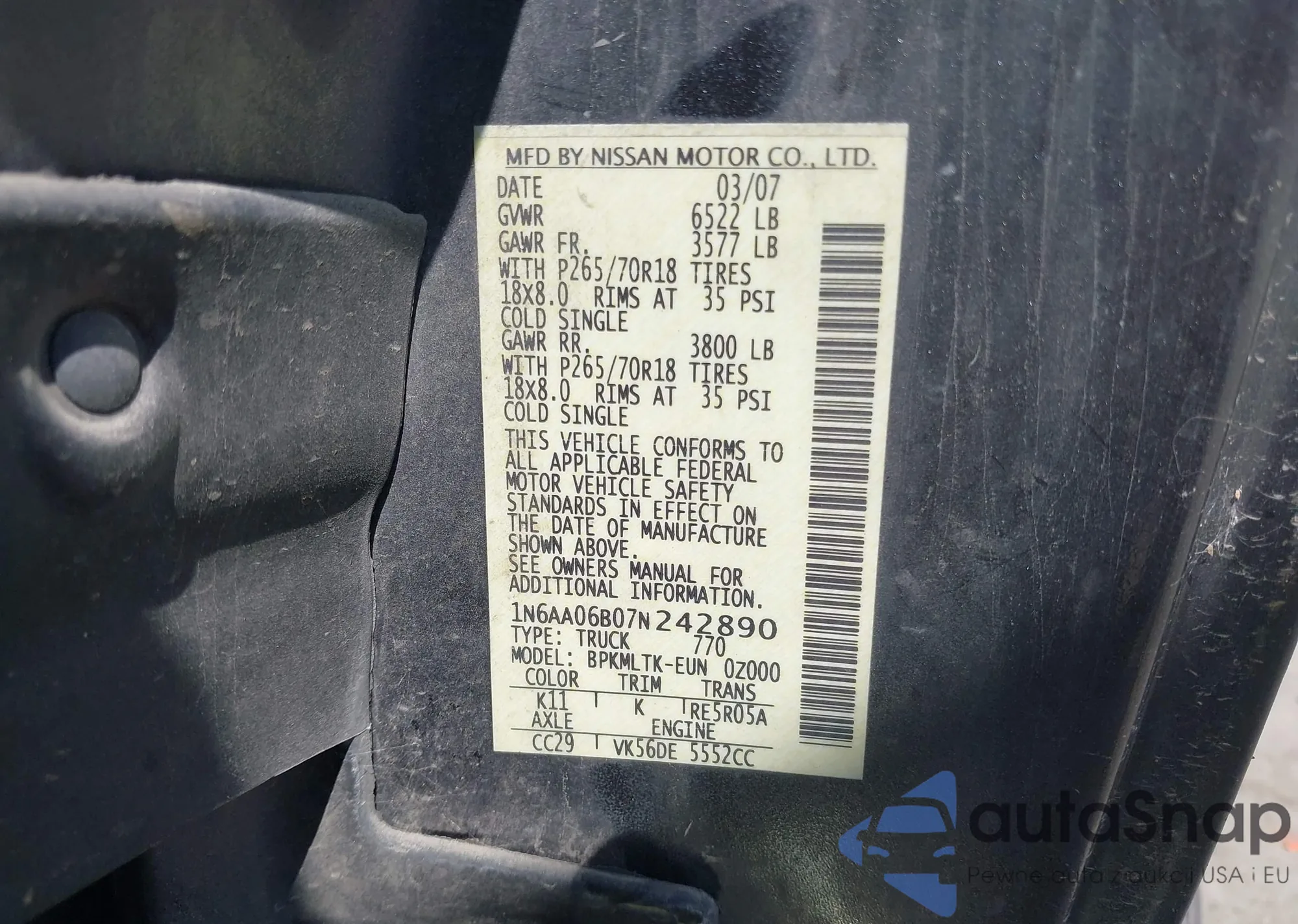 • VIN 1N6AA06B07N242890