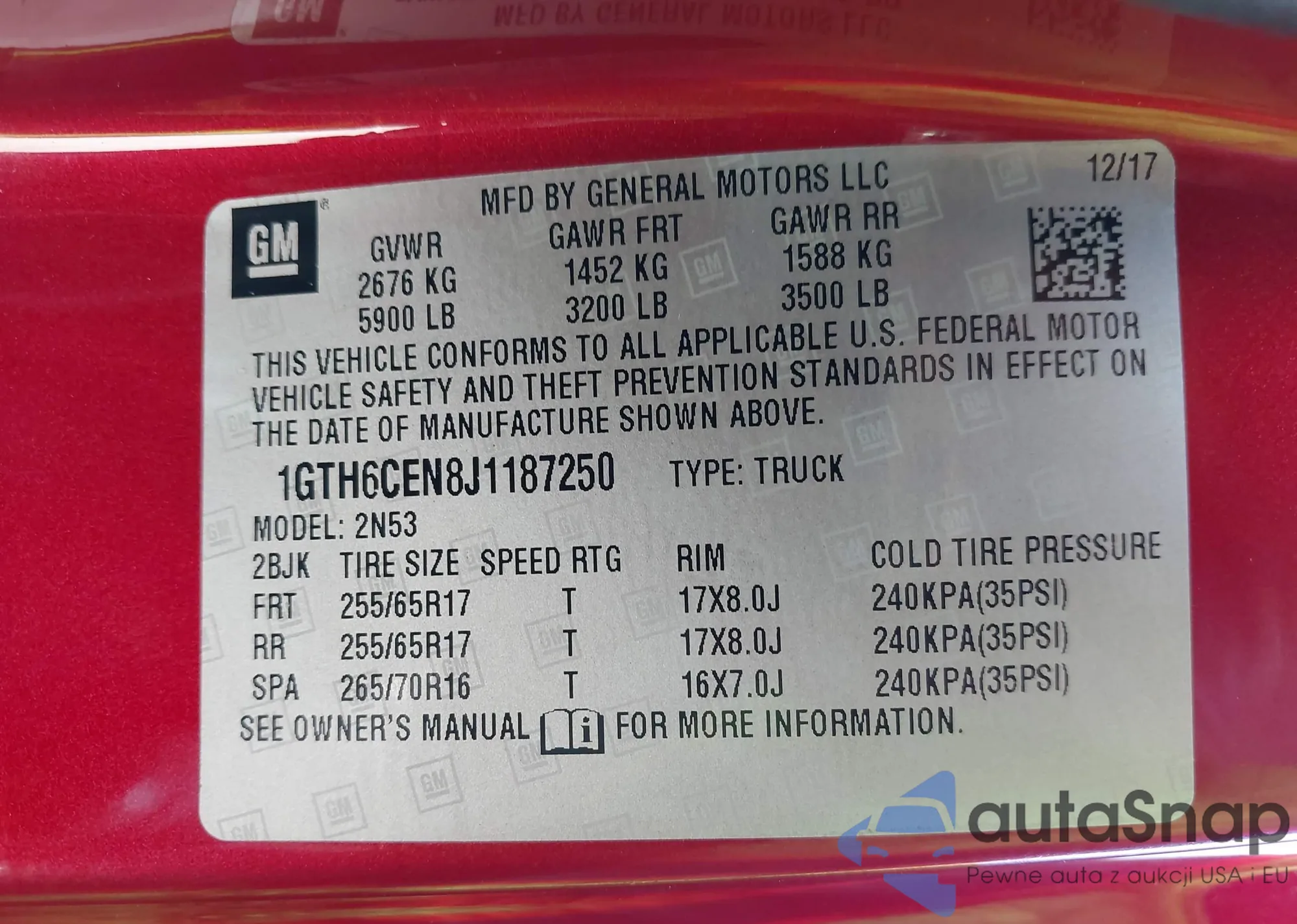LOT: 43246606 VIN: 1GTH6CEN8J1187250