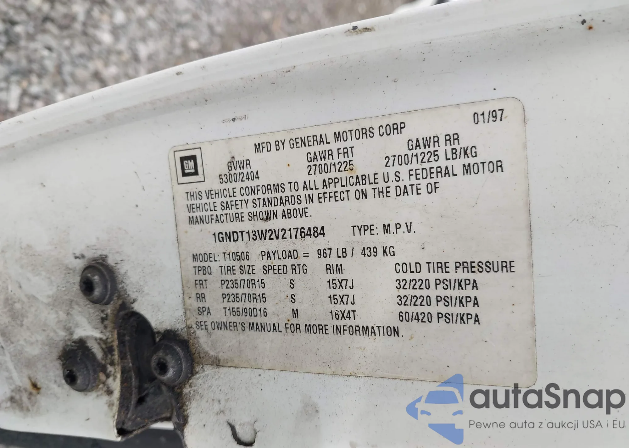 LOT: 43321350 VIN: 1GNDT13W2V2176484