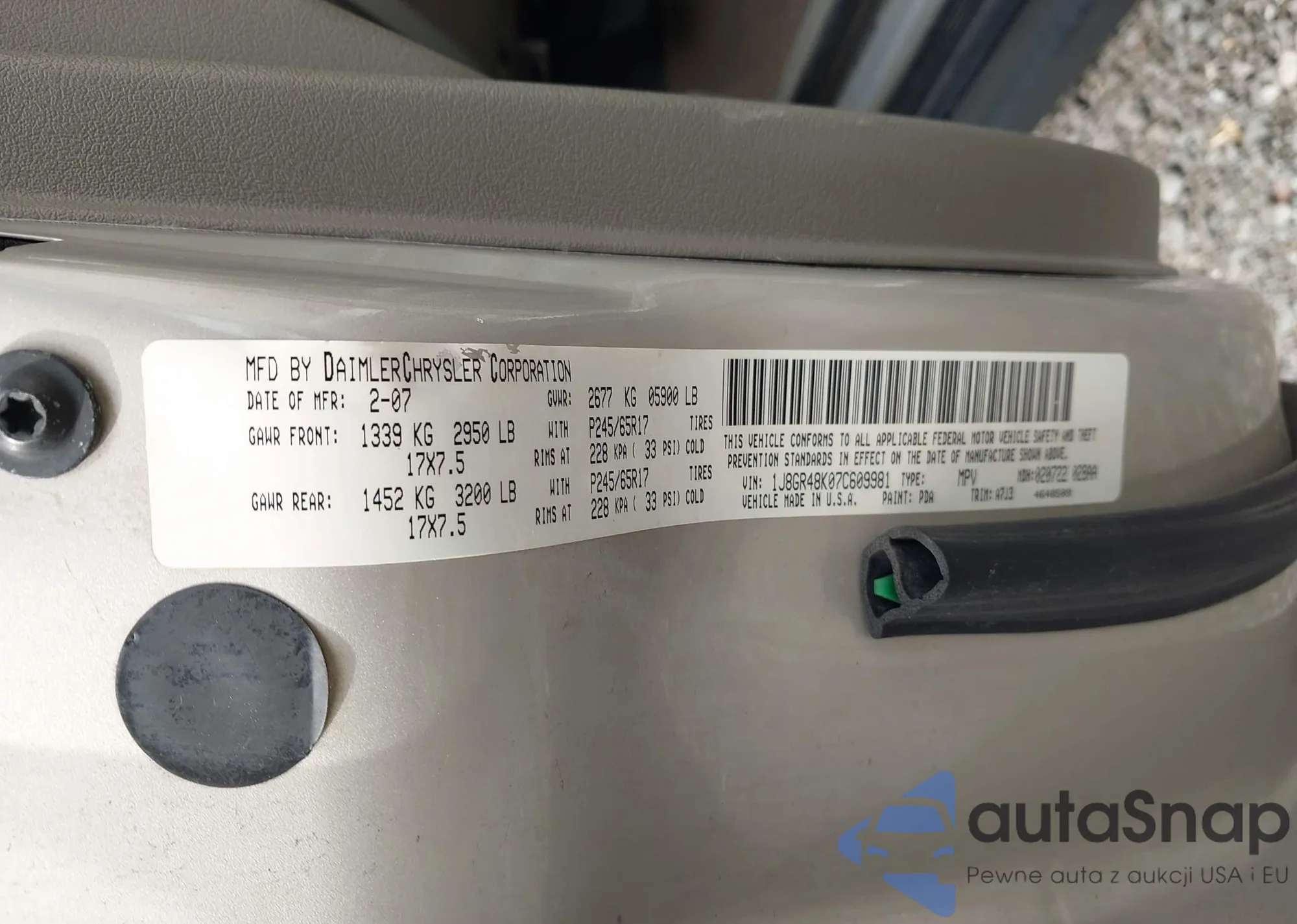 • VIN 1J8GR48K07C609981