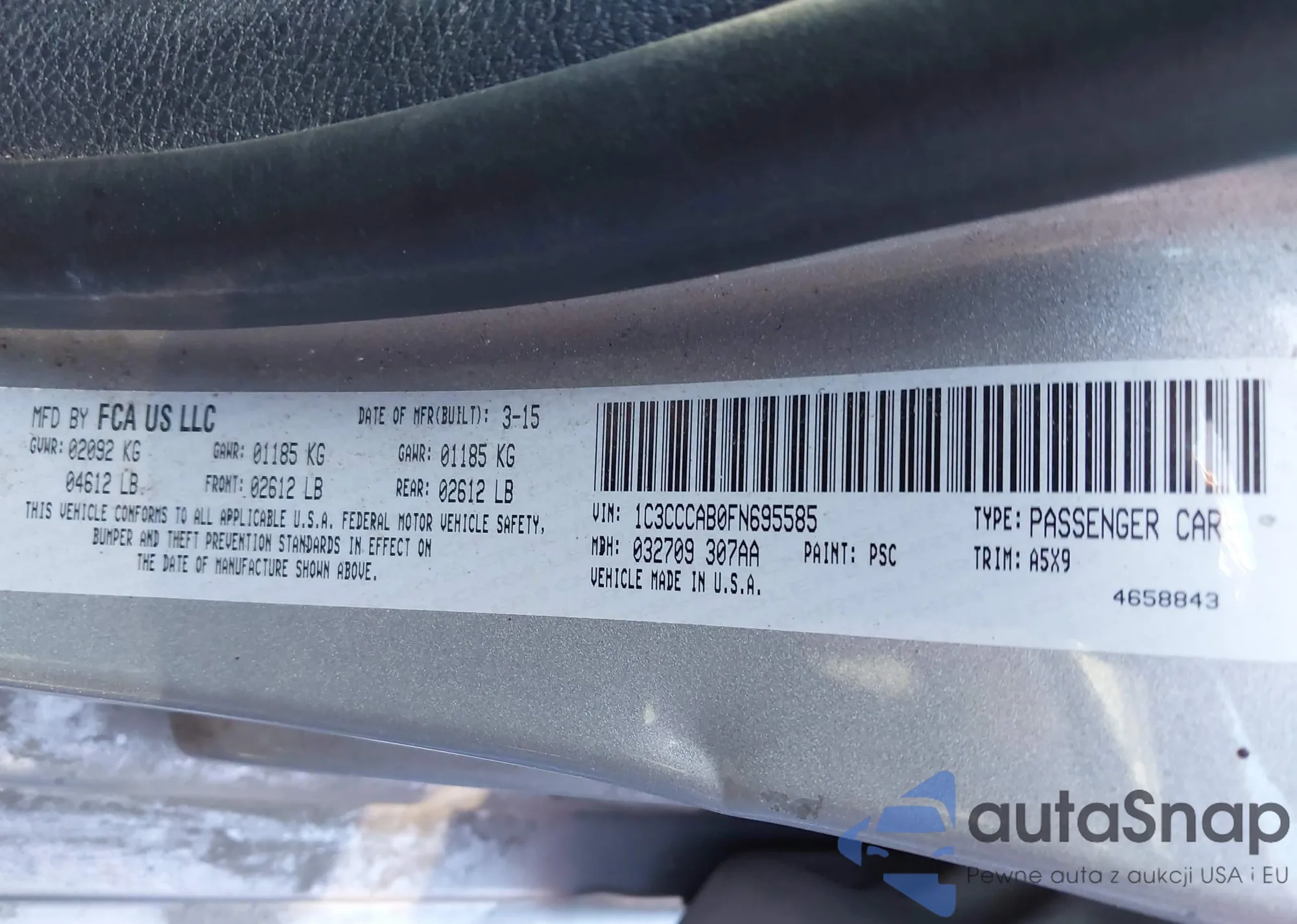 LOT: 43327329 VIN: 1C3CCCAB0FN695585