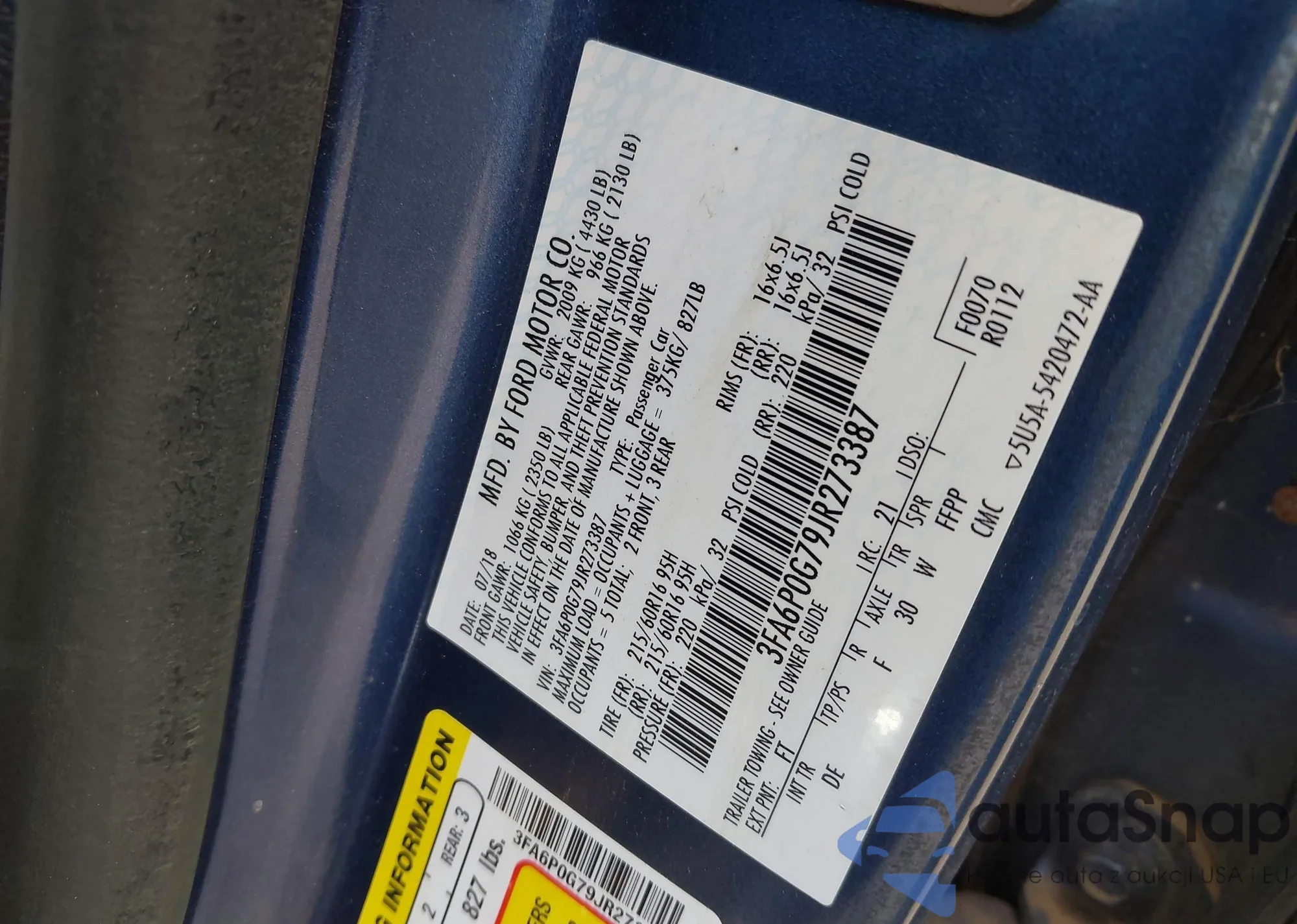 • VIN 3FA6P0G79JR273387
