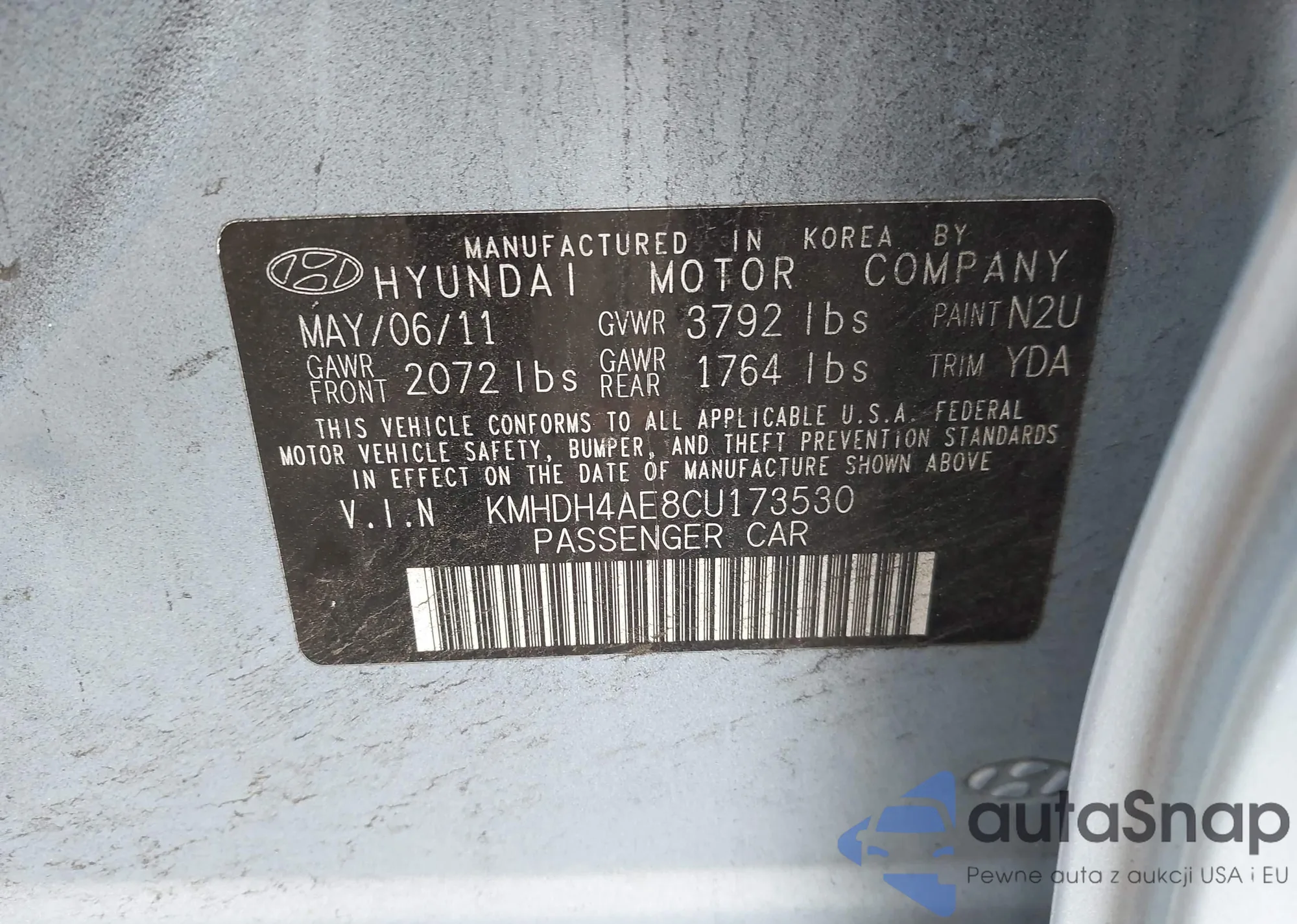 LOT: 43342106 VIN: KMHDH4AE8CU173530