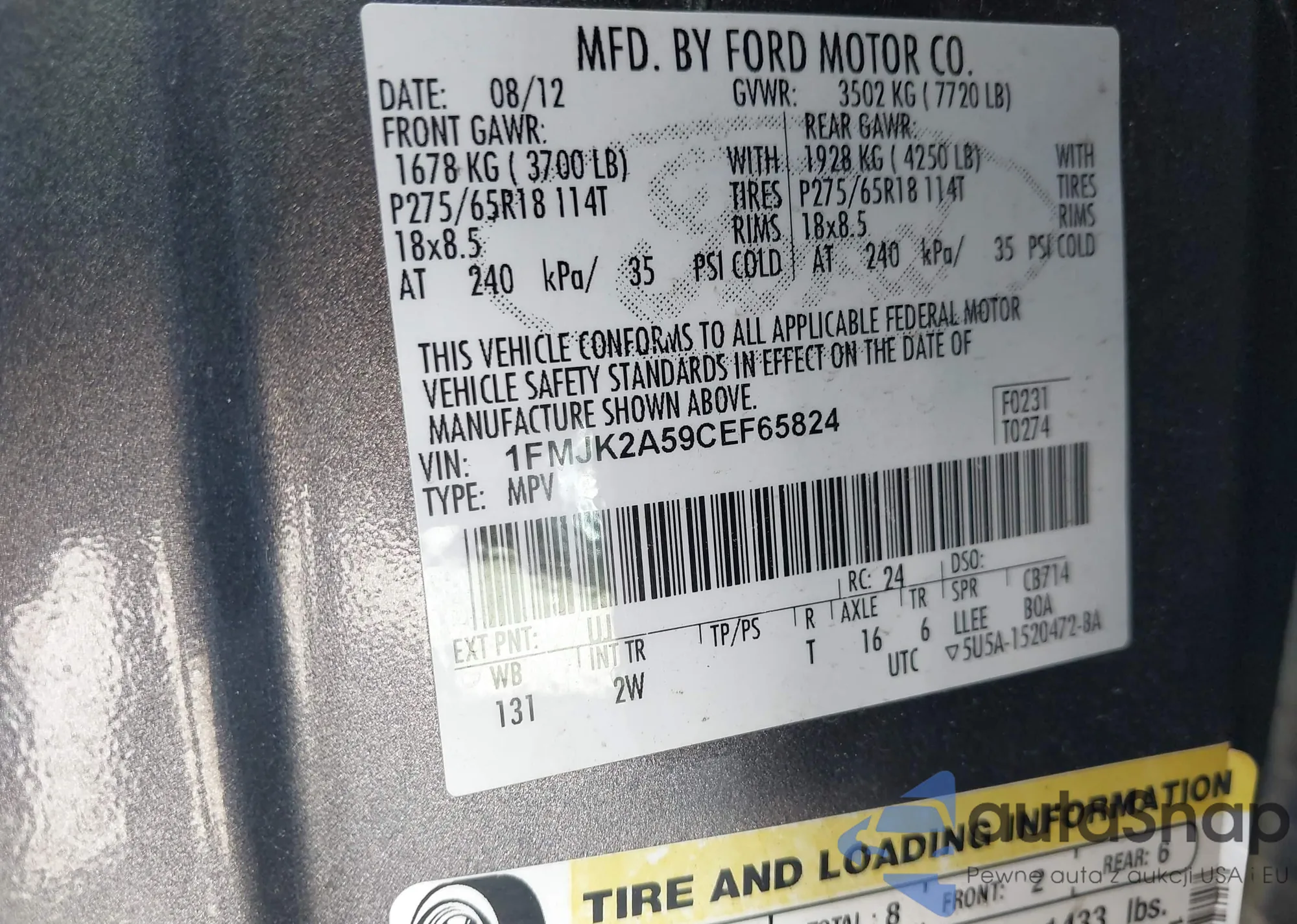 LOT: 39620378 VIN: 1FMJK2A59CEF65824