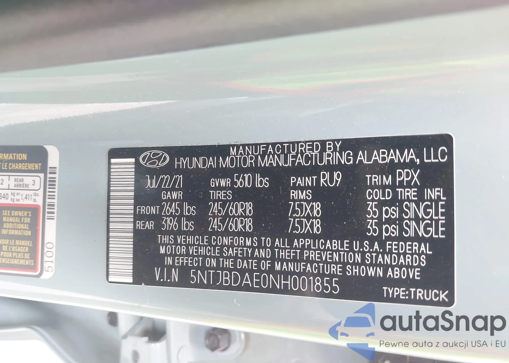 • VIN 5NTJBDAE0NH001855