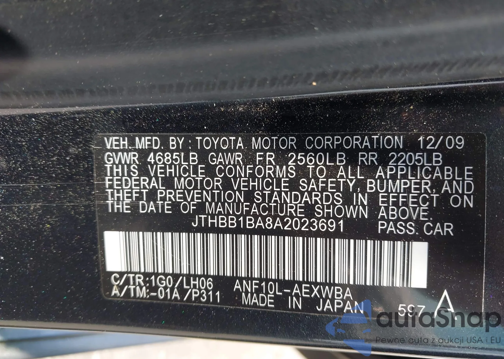 • VIN JTHBB1BA8A2023691