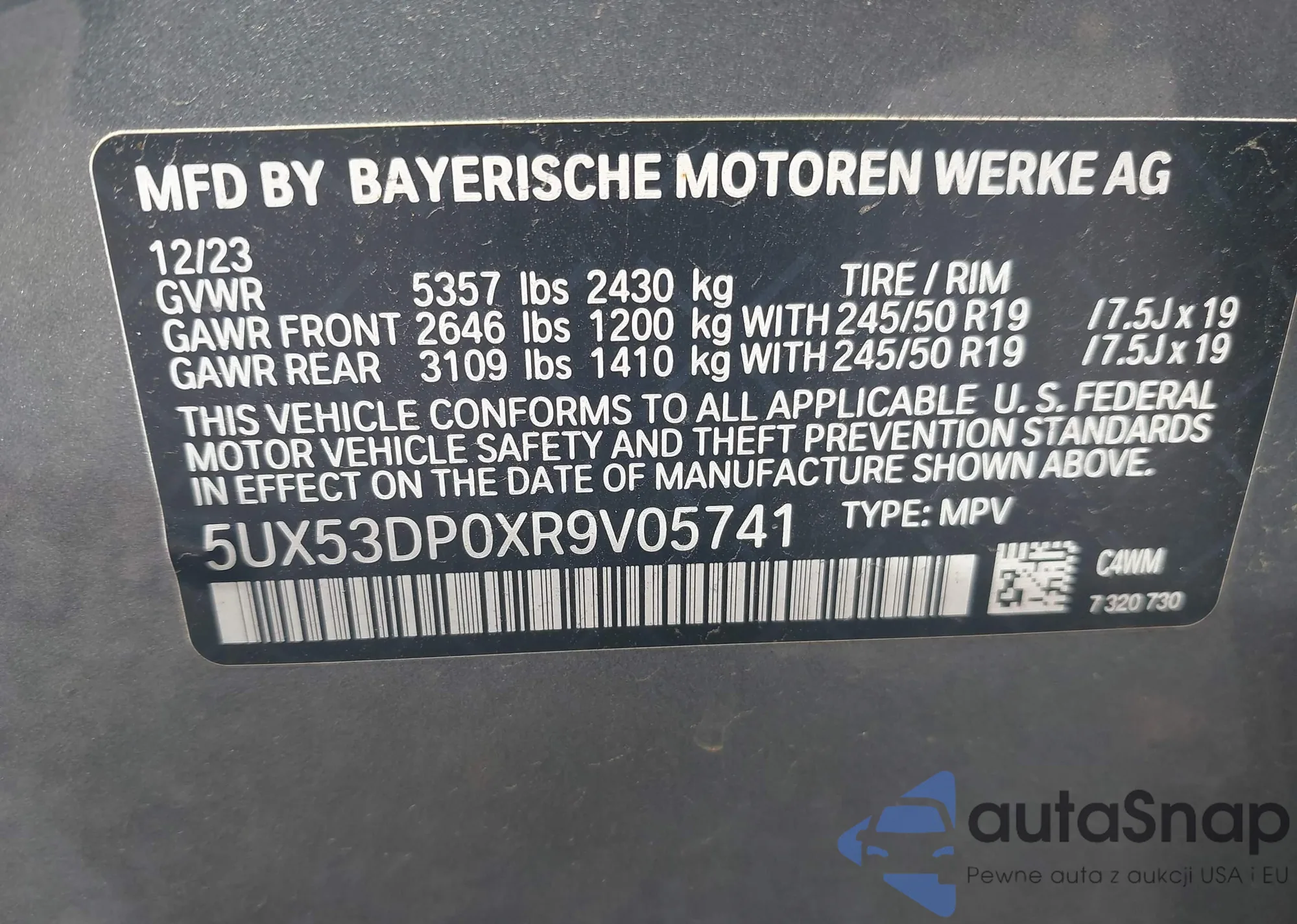 • VIN 5UX53DP0XR9V05741