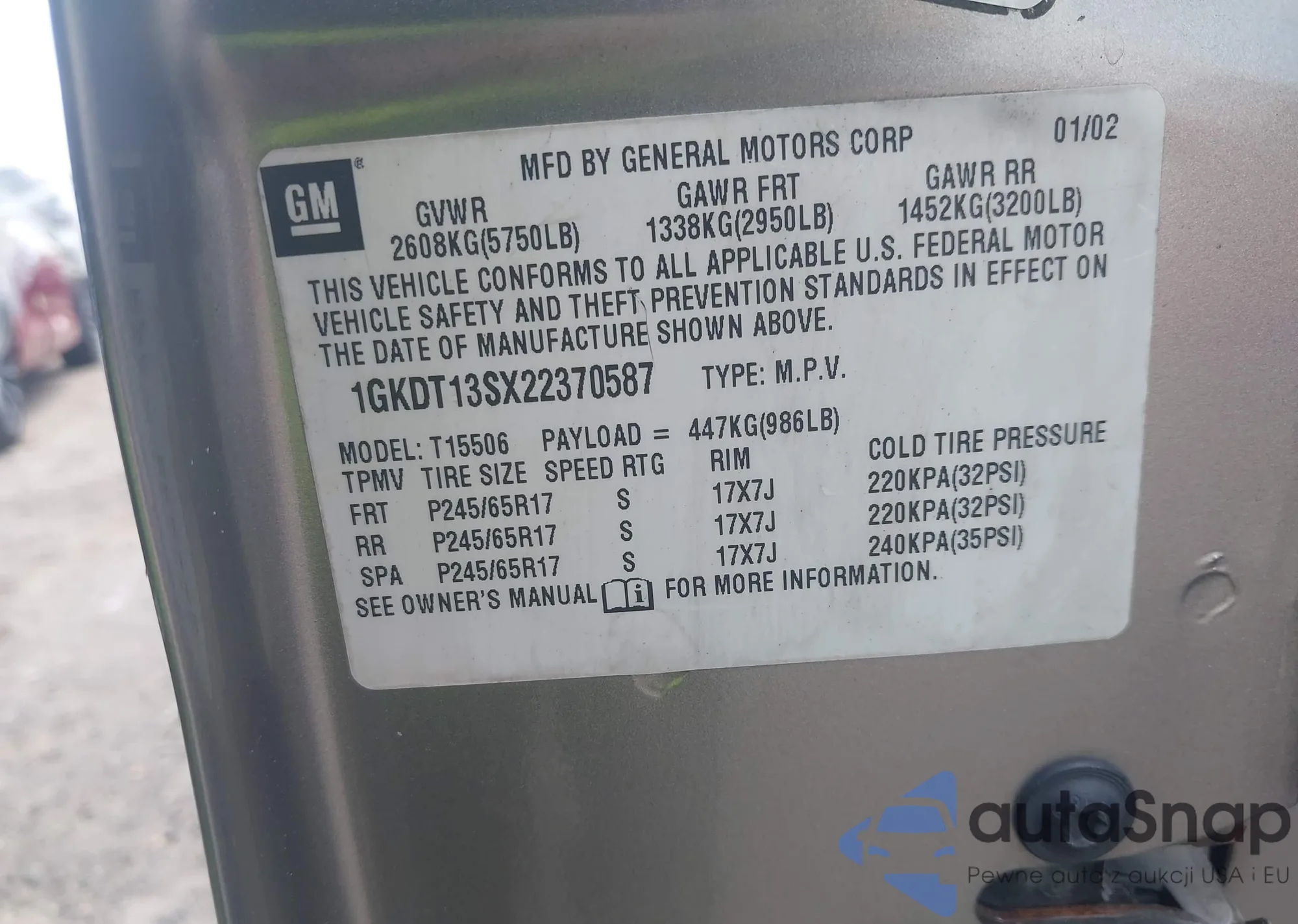 • VIN 1GKDS13S95222581