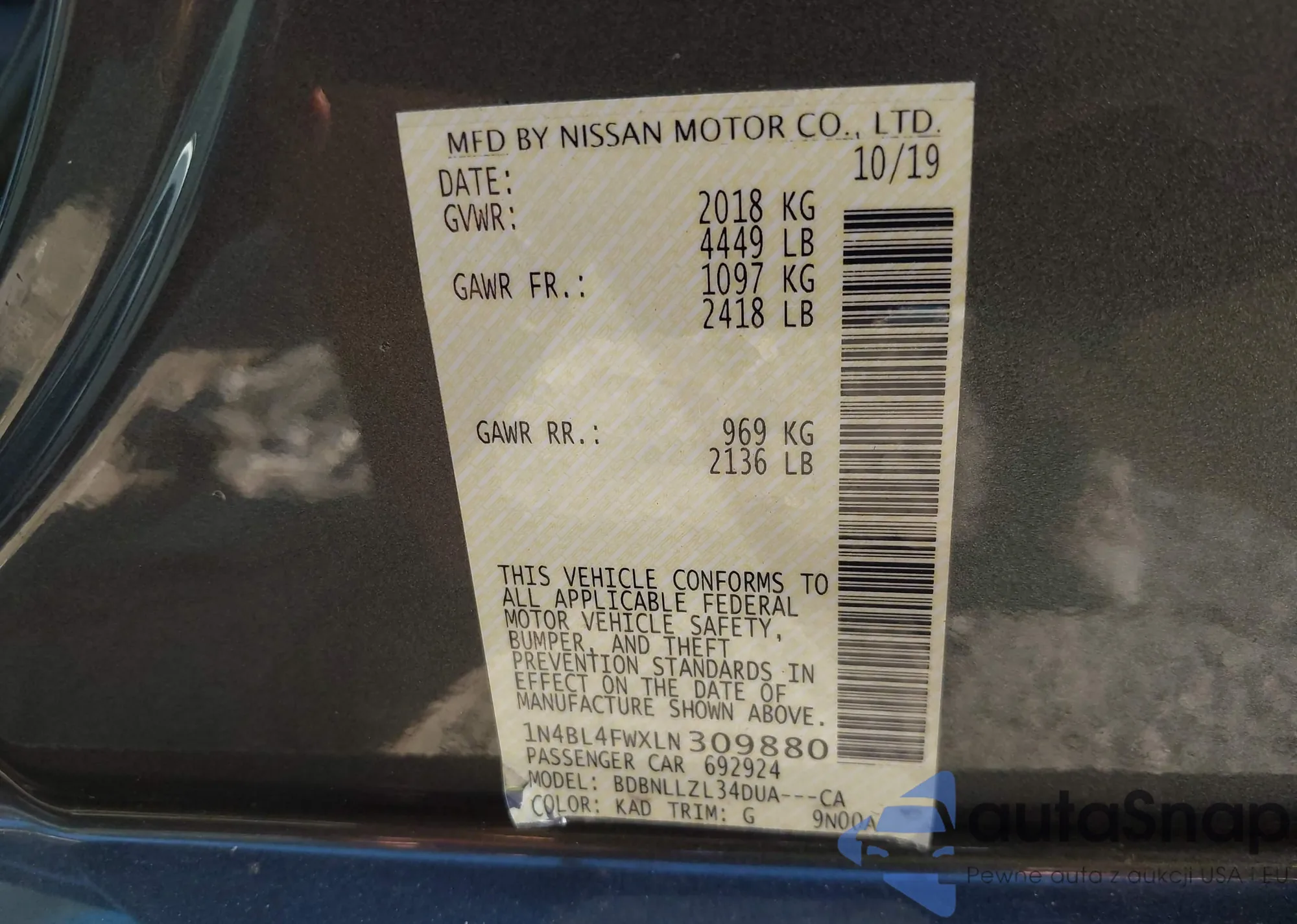 • VIN 1G6AB5RA7D0122807