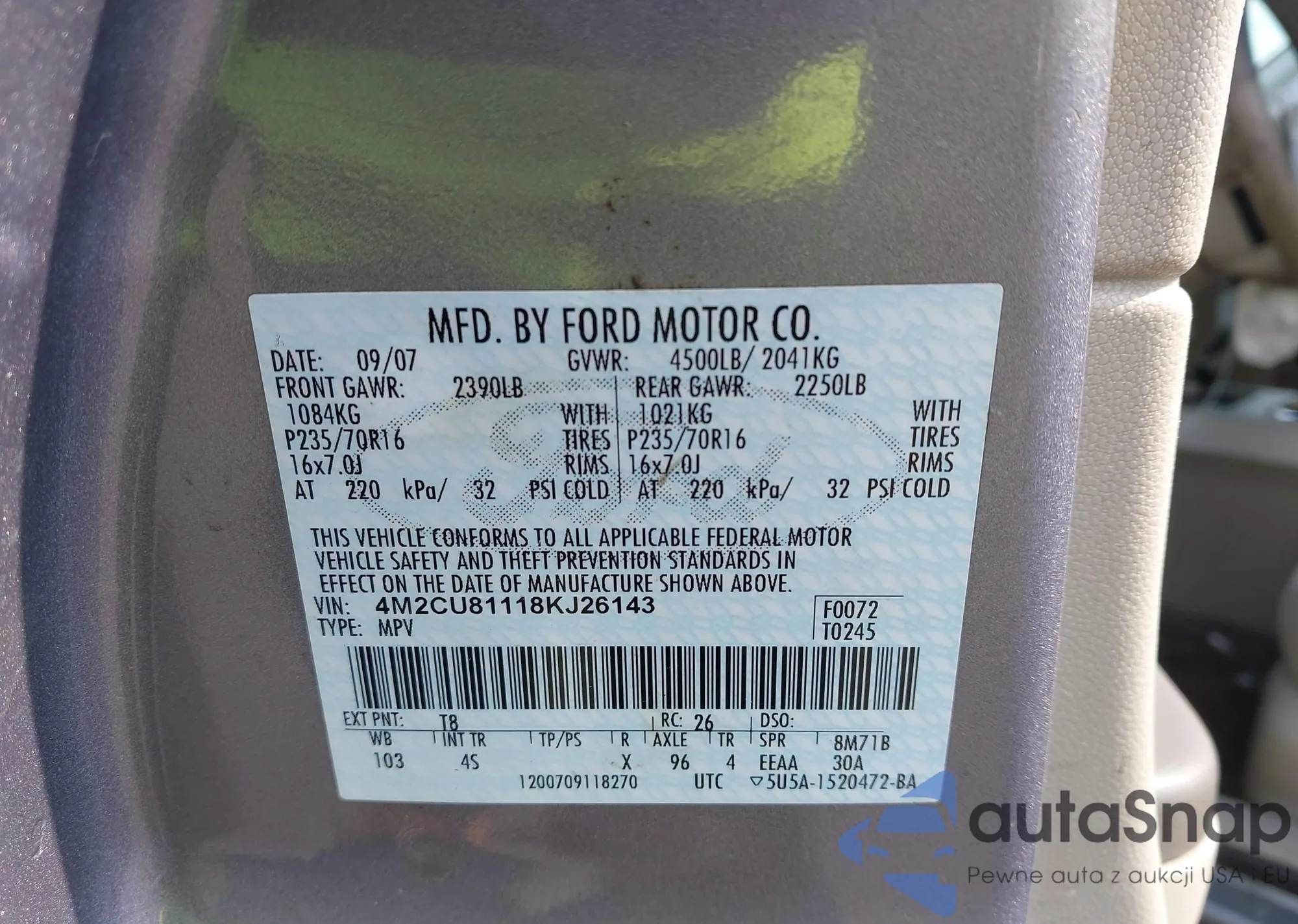 LOT: 43232880 VIN: 4M2CU81118KJ26143
