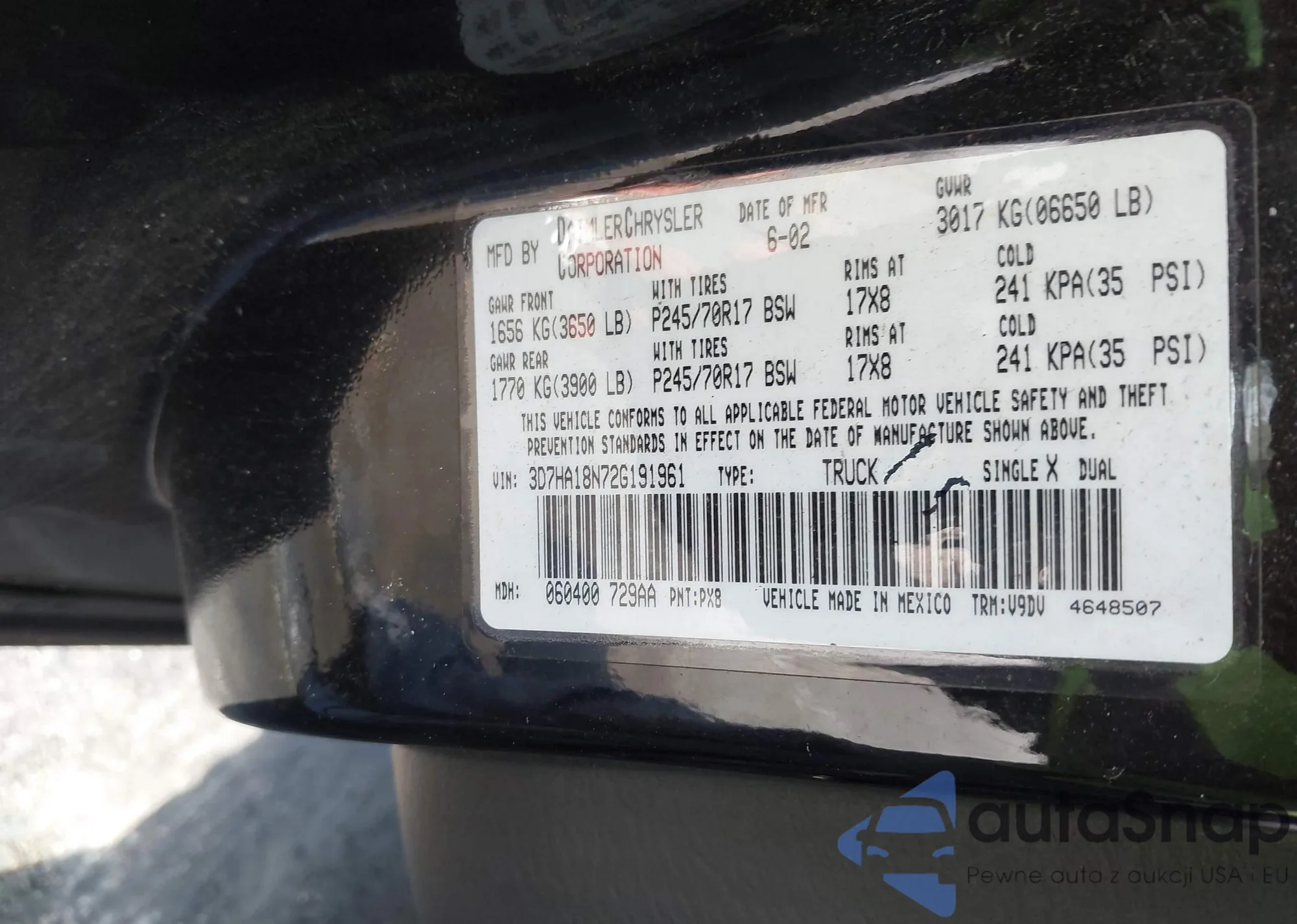 • VIN 3D7HA18N72G191961