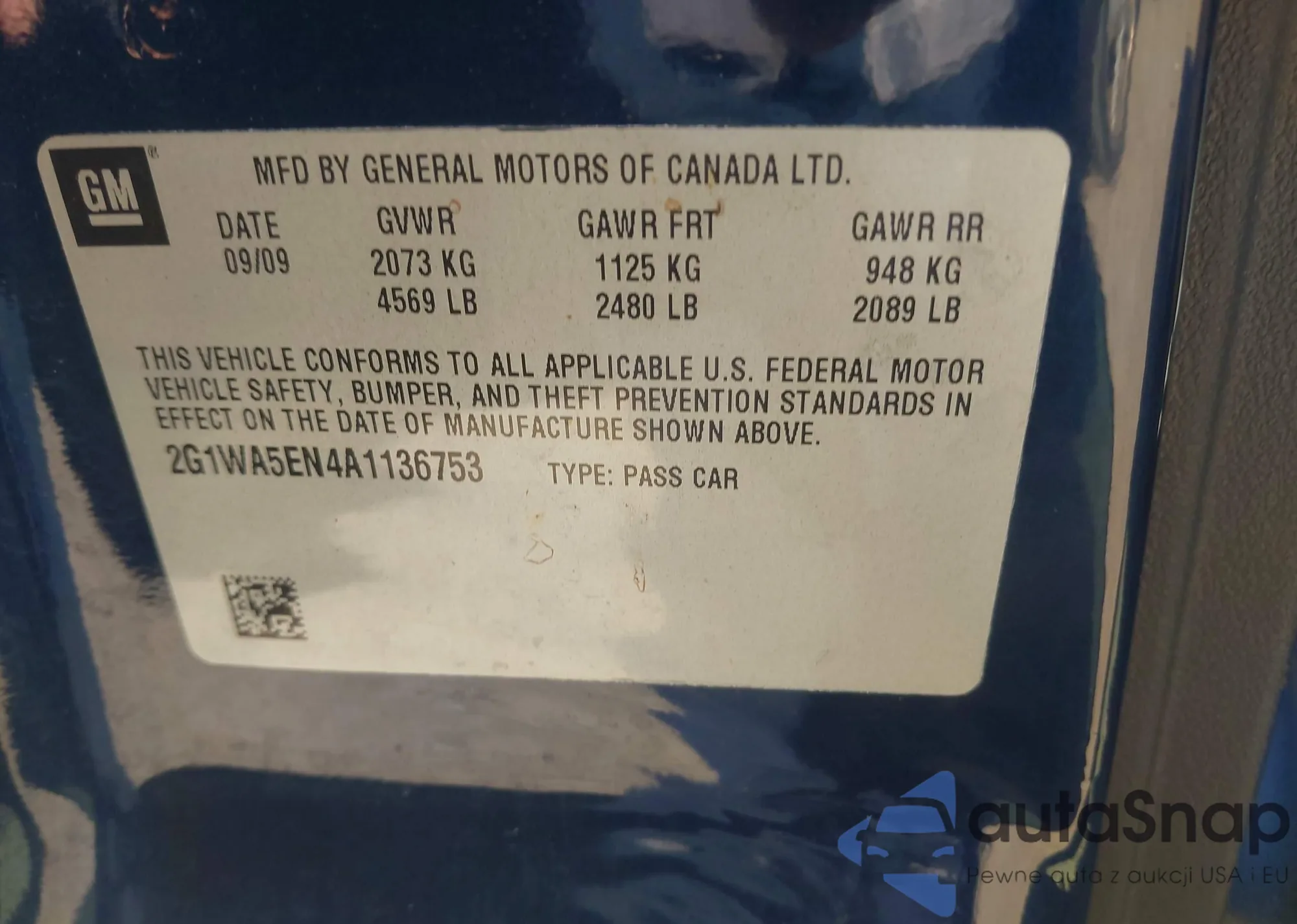 • VIN 2G1WA5EN4A1136753