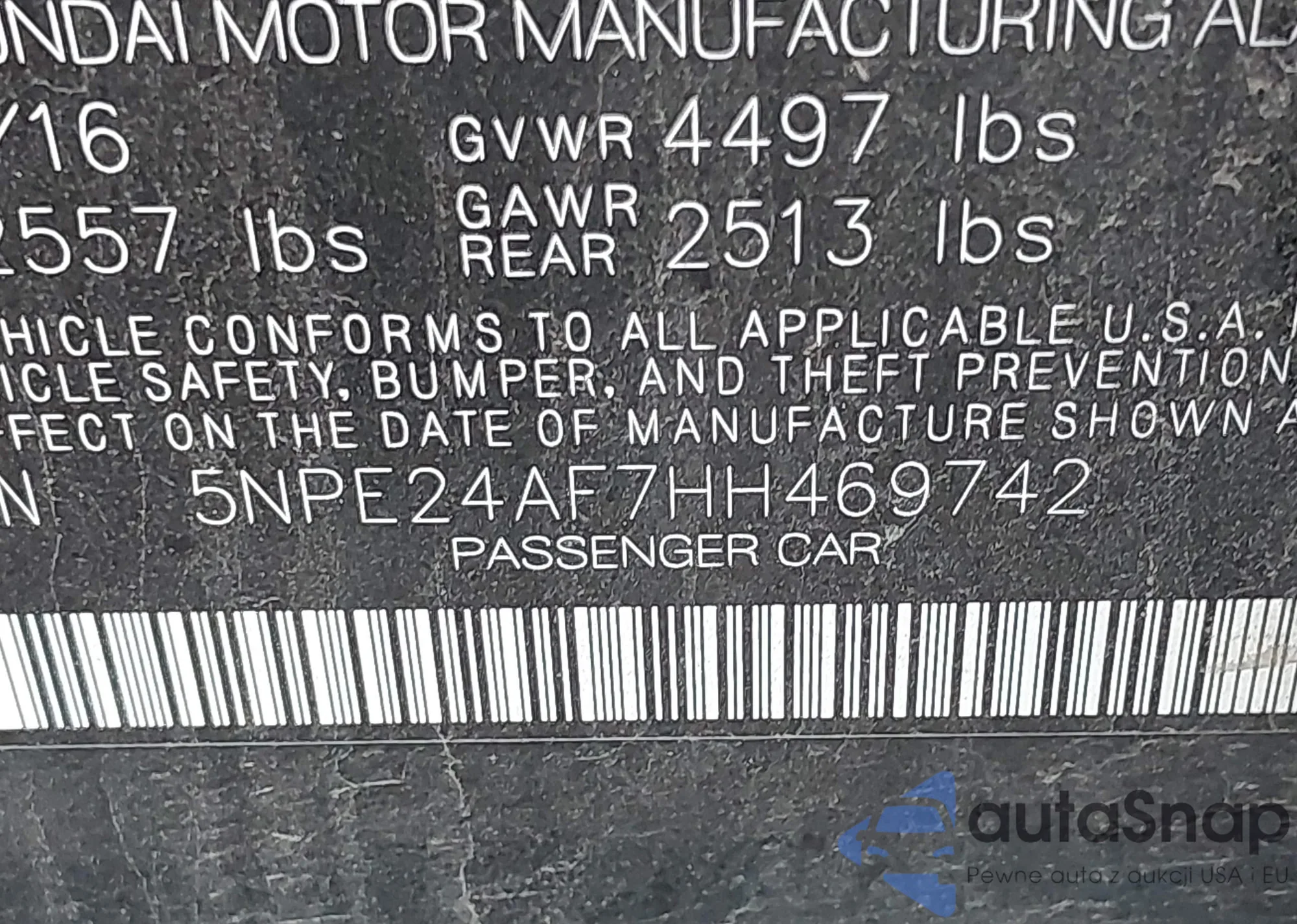 • VIN 5NPE24AF7HH469742