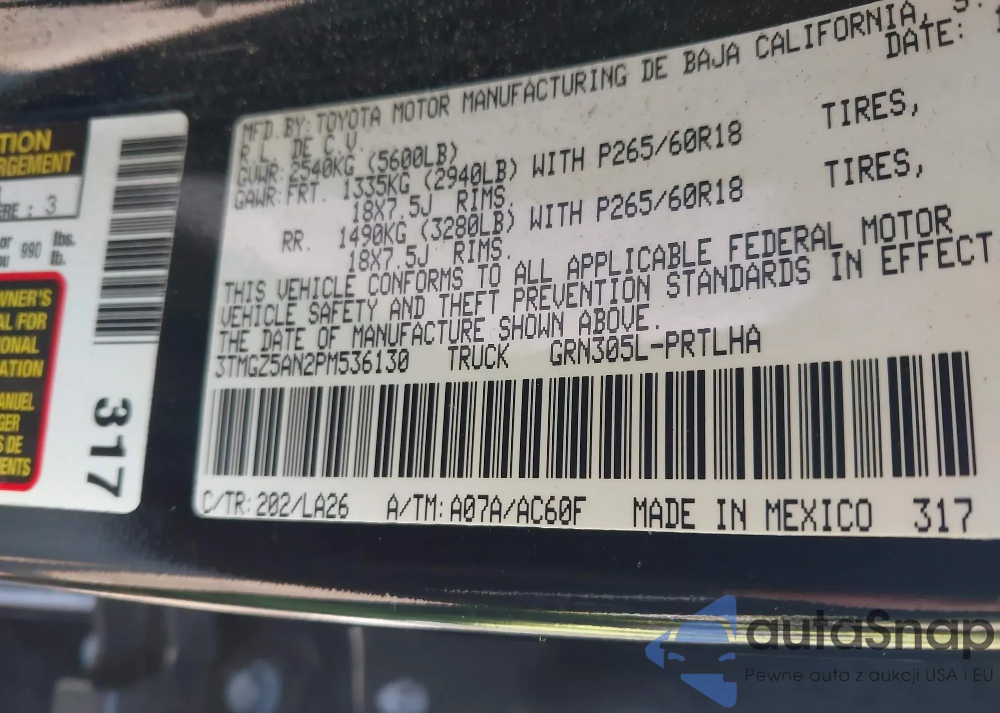 • VIN 3TMGZ5AN2PM536130