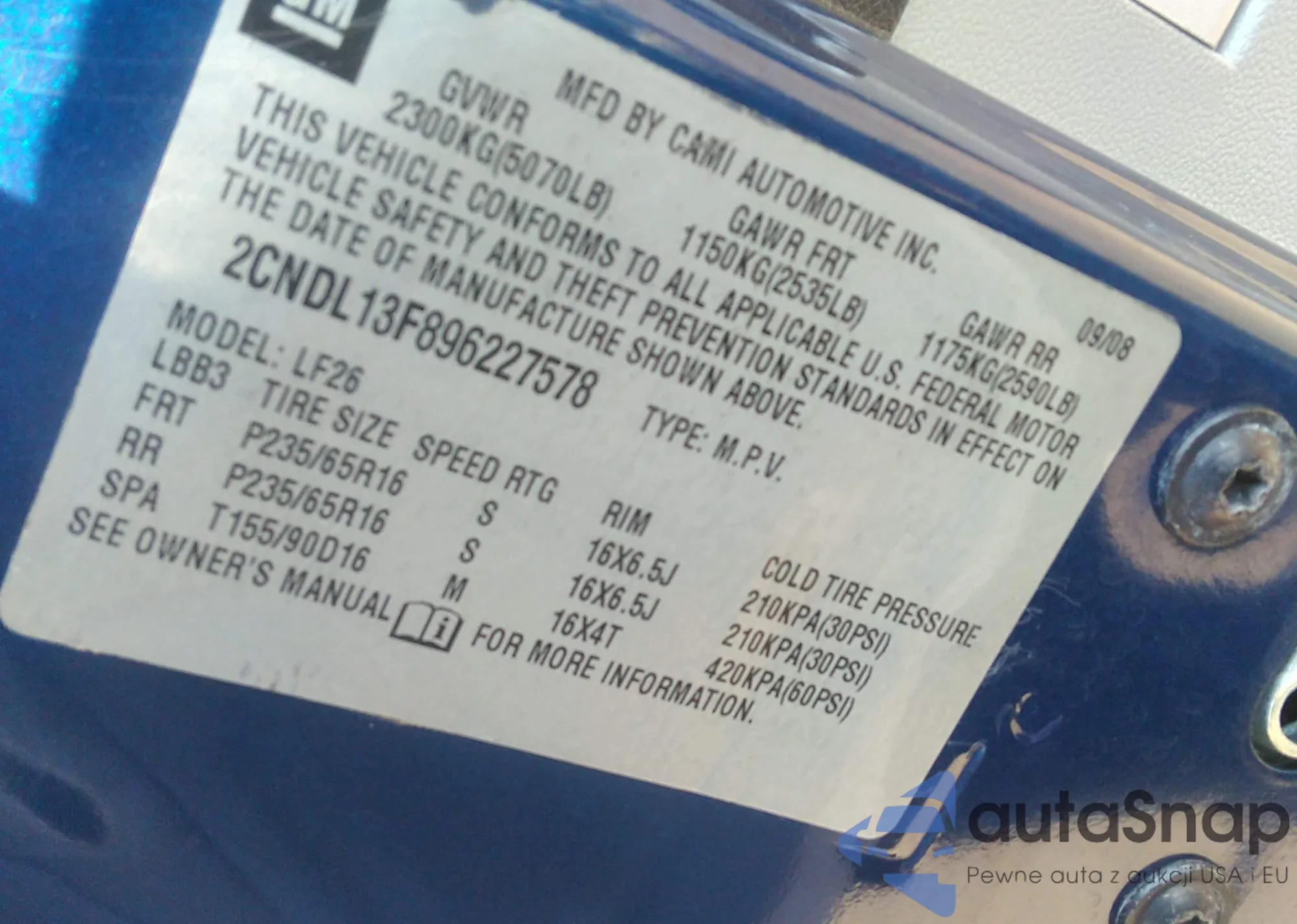 • VIN 2CNDL13F896227578