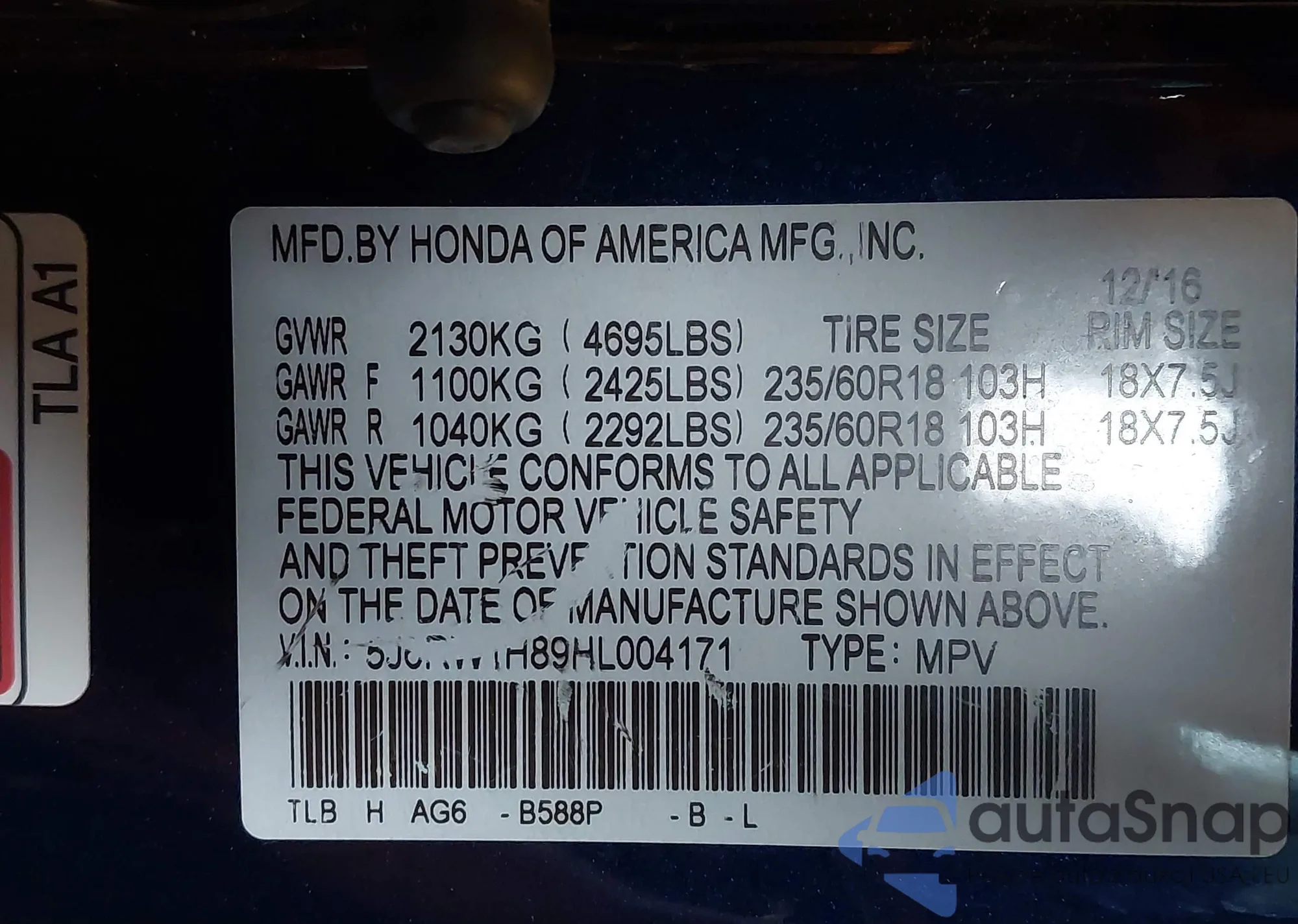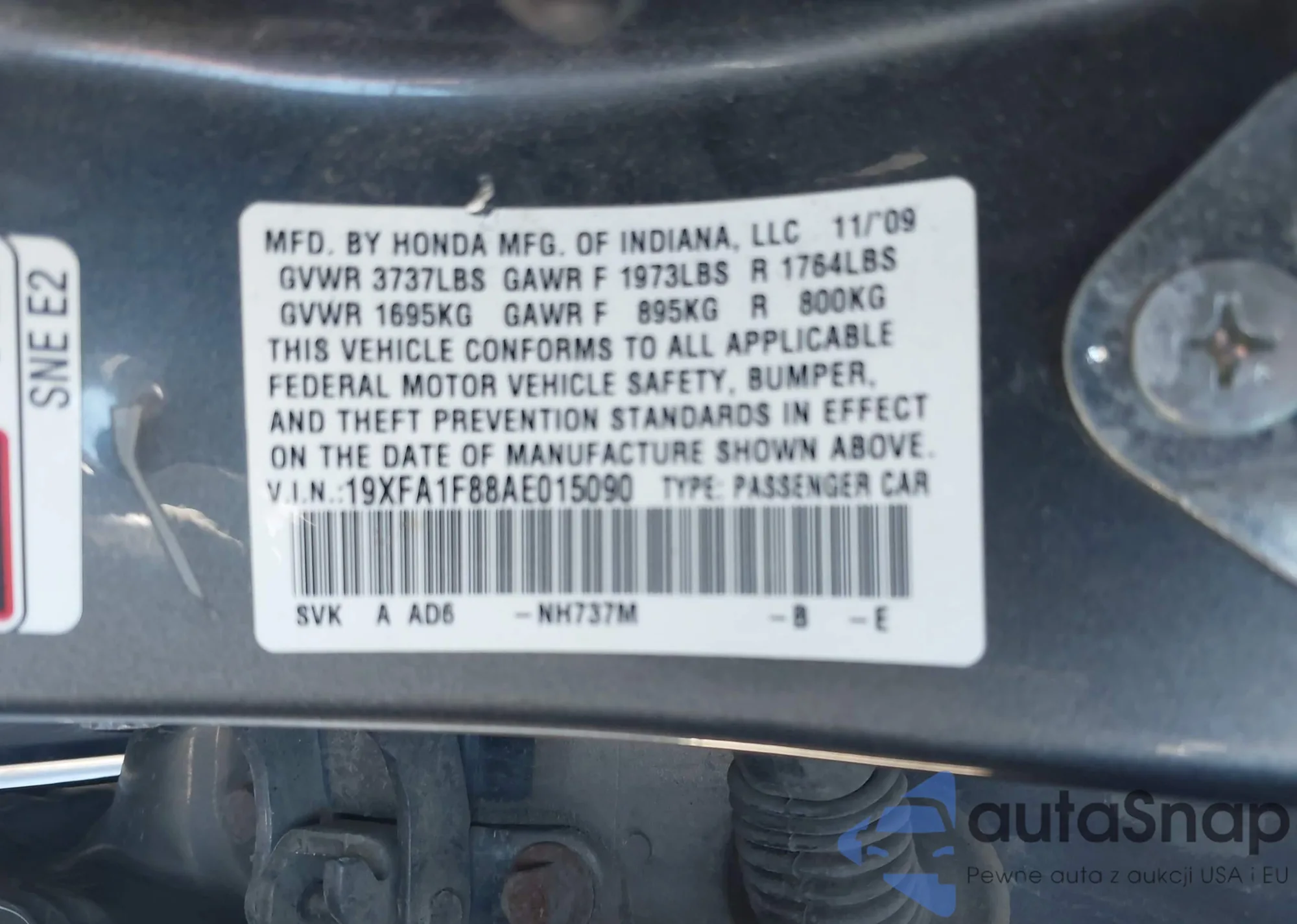 LOT: 43318413 VIN: 2HGFE1F94RH316003