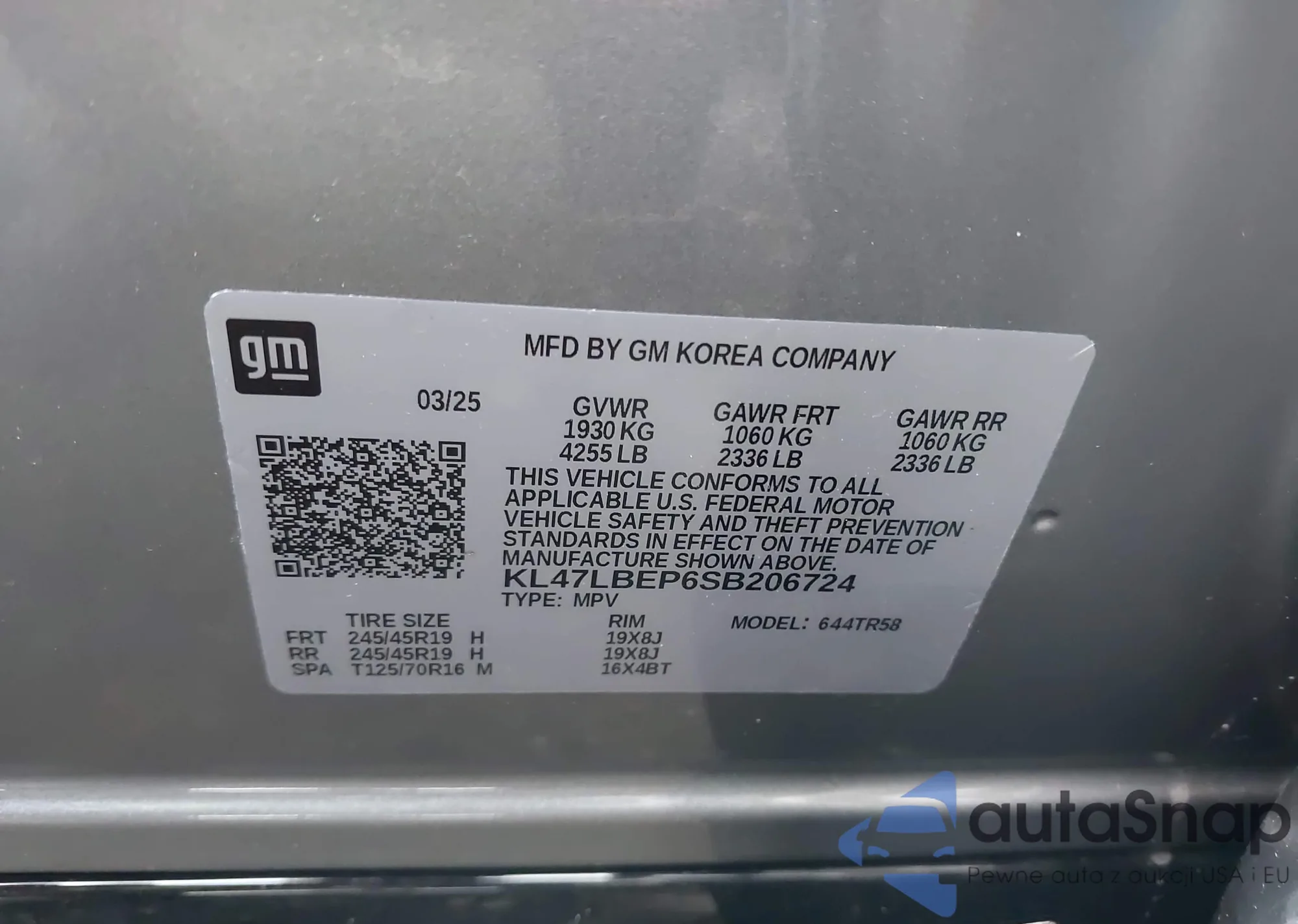 • VIN KL47LBEP6SB206724