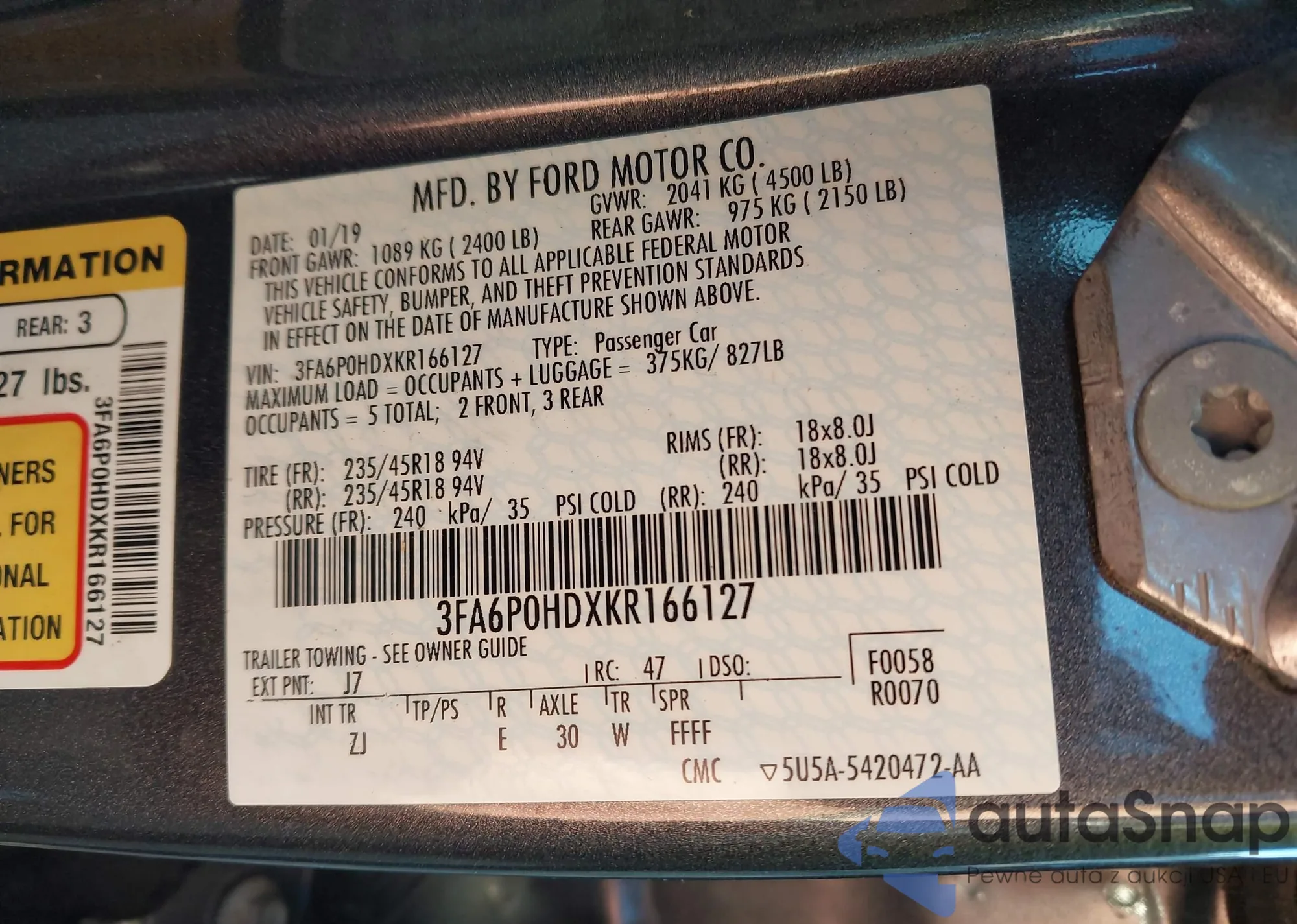 • VIN 3FA6P0HDXKR166127