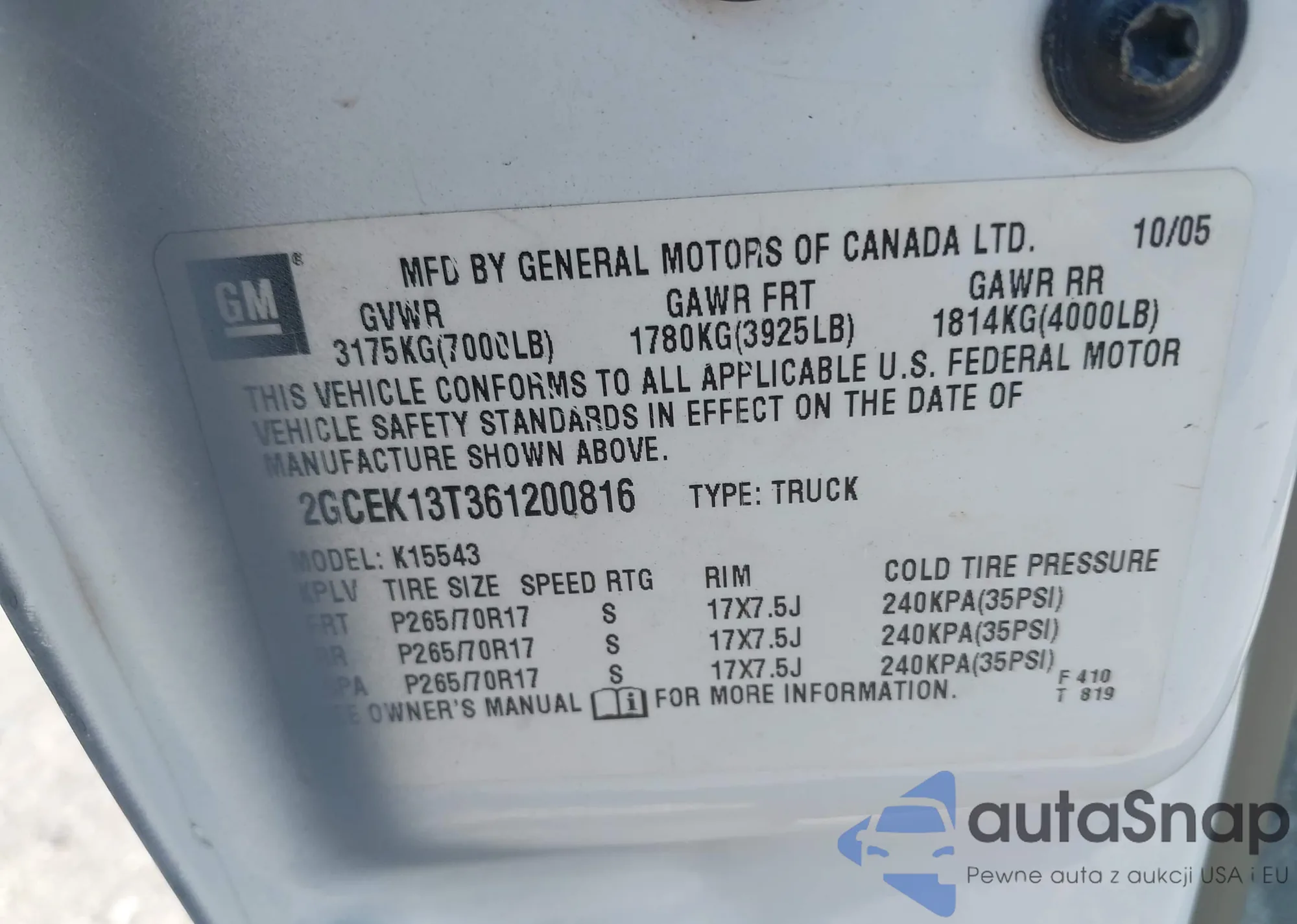 • VIN 2GCEK13T361200816