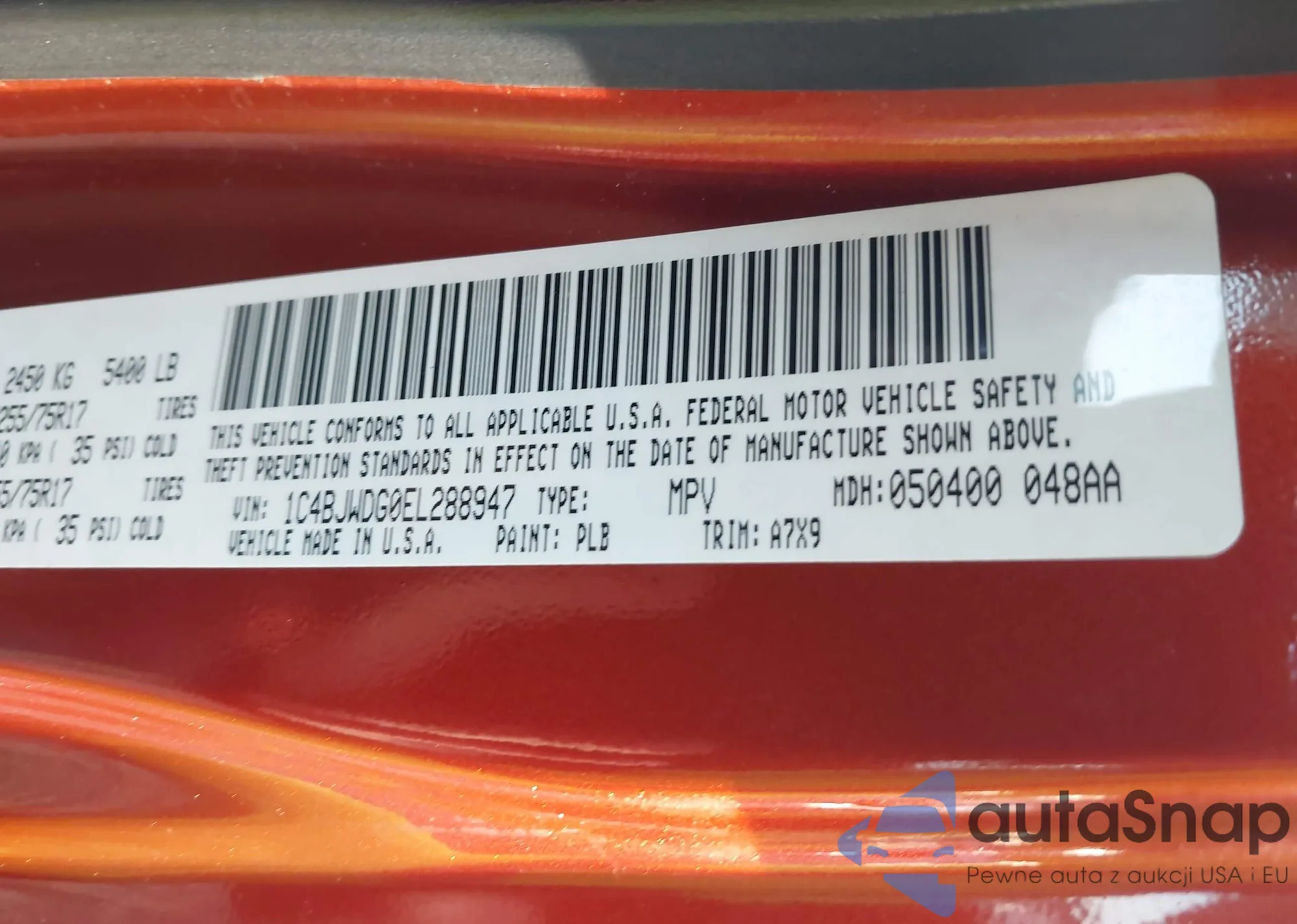 • VIN 1C4BJWDG0EL288947