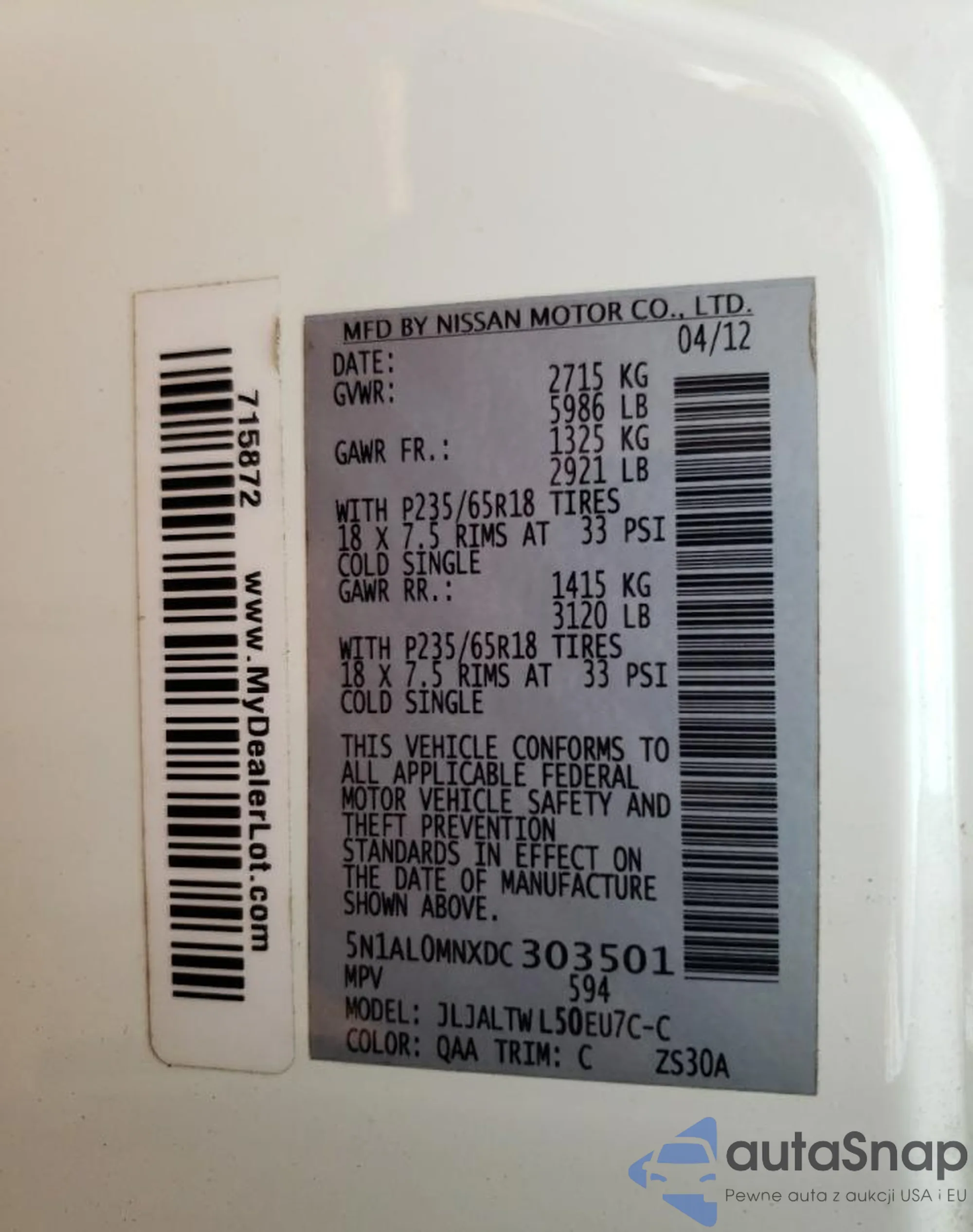 • VIN 5N1AL0MNXDC303501