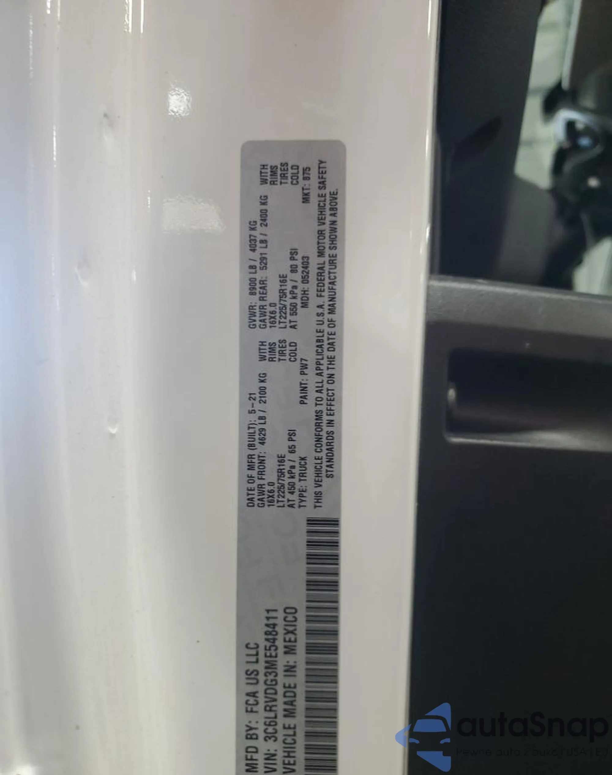 • VIN 3C6LRVDG3ME548411