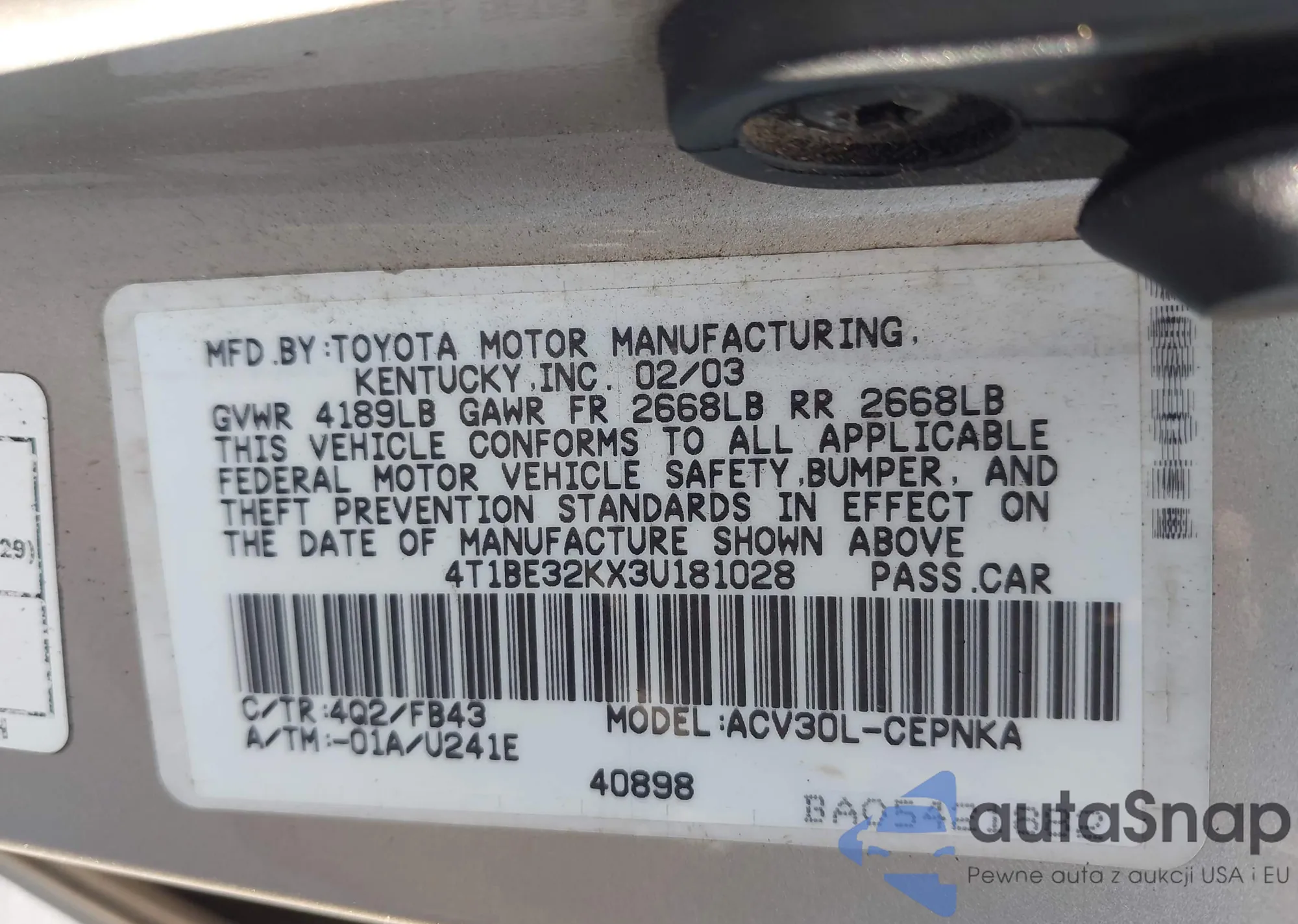 • VIN 4T1BE32KX3U181028