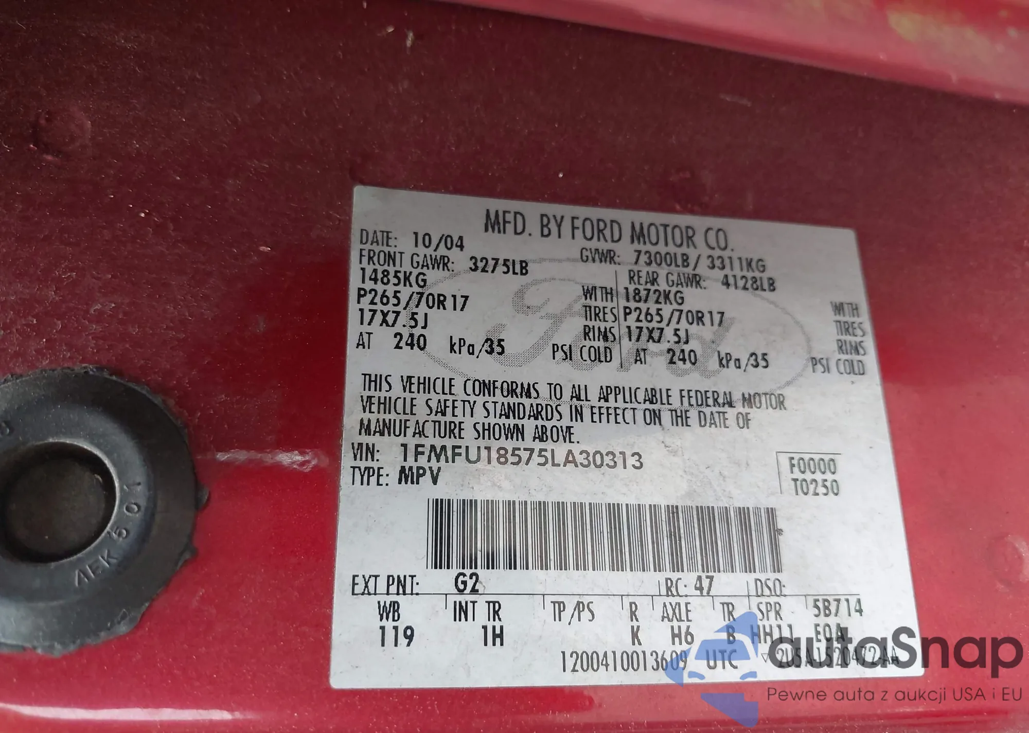• VIN 1FMFU18575LA30313
