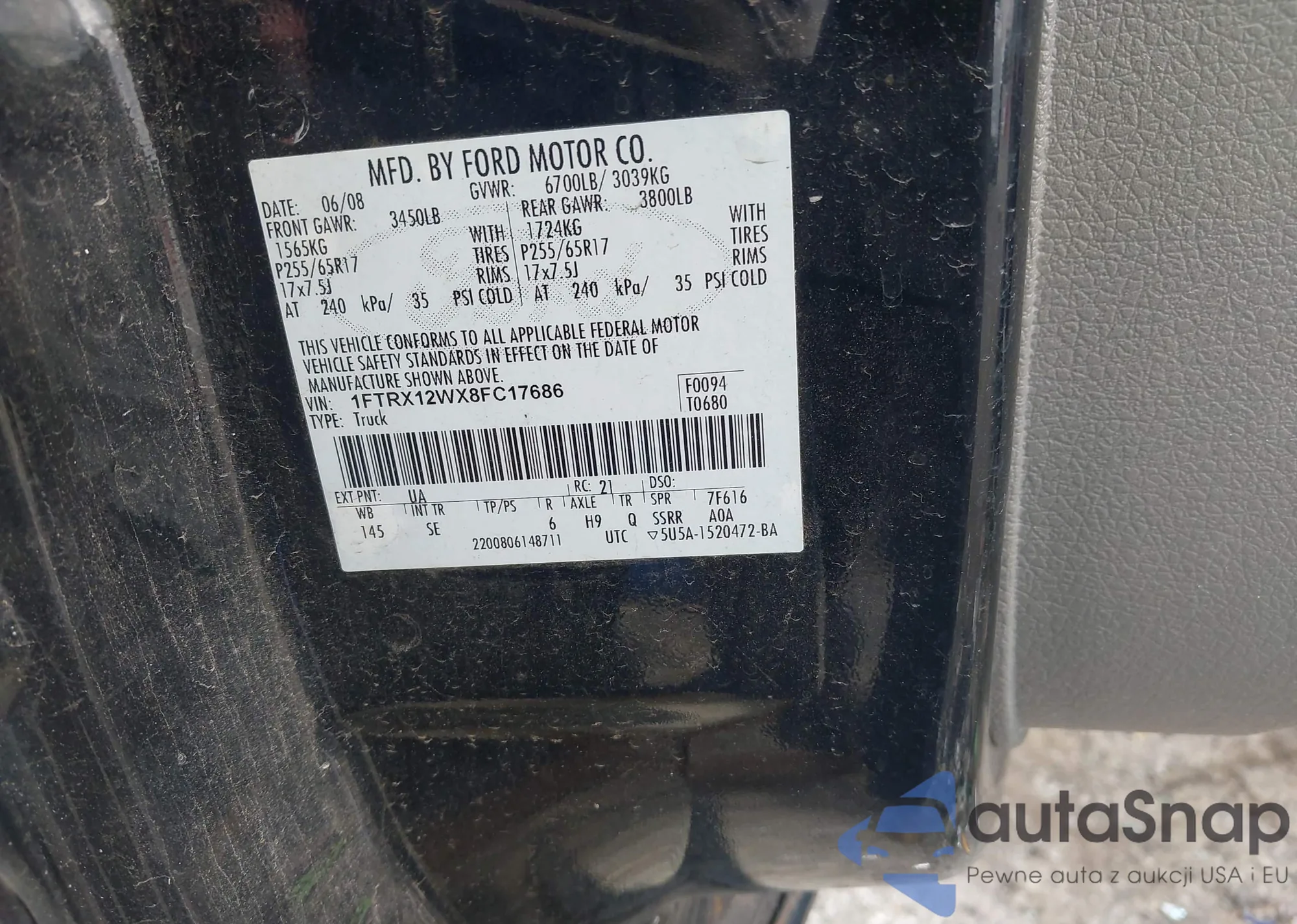 • VIN 1FTRX12WX8FC17686