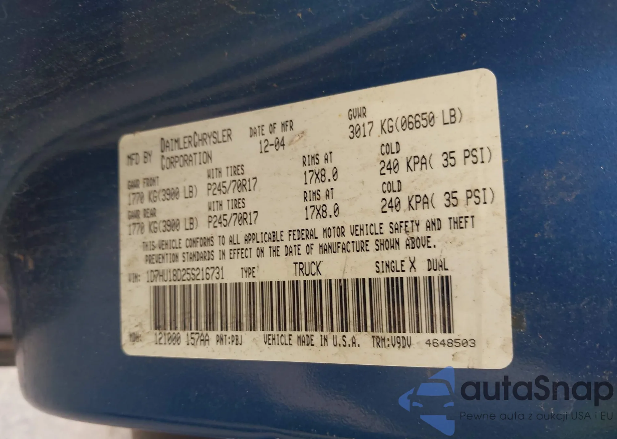 • VIN 1D7HU18D25S216731