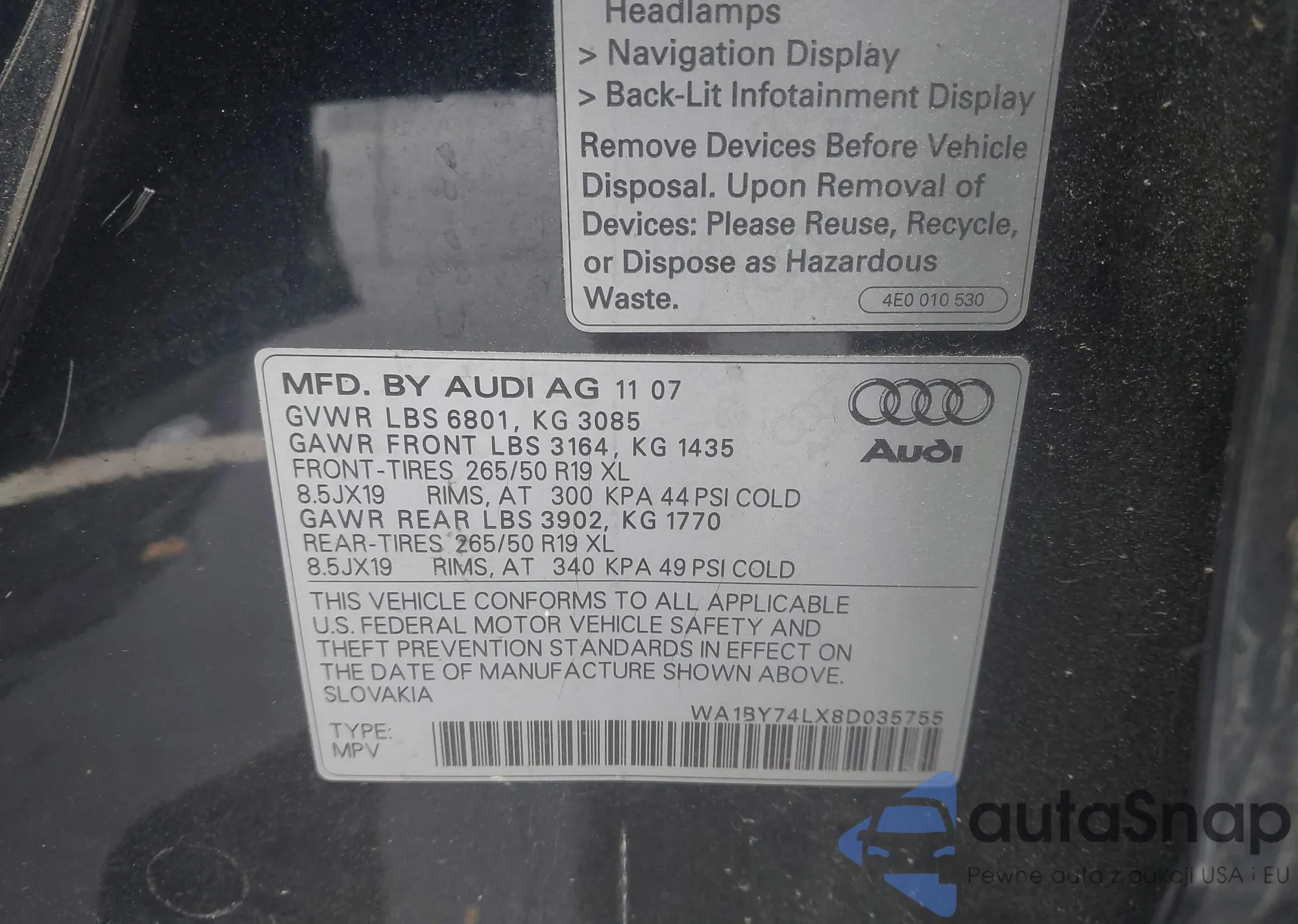 • VIN WA1BY74LX8D035755