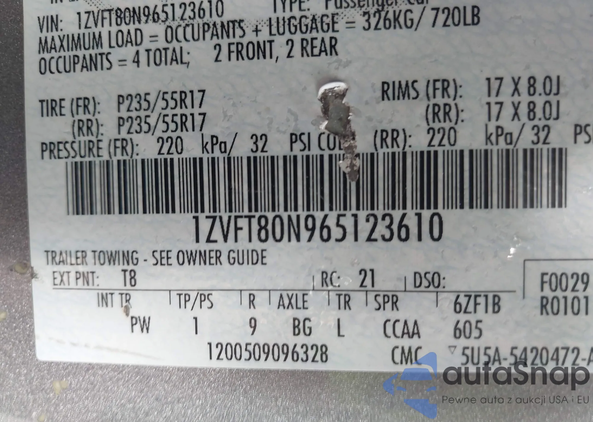LOT: 43240091 VIN: 3C8FY4BB71T667062