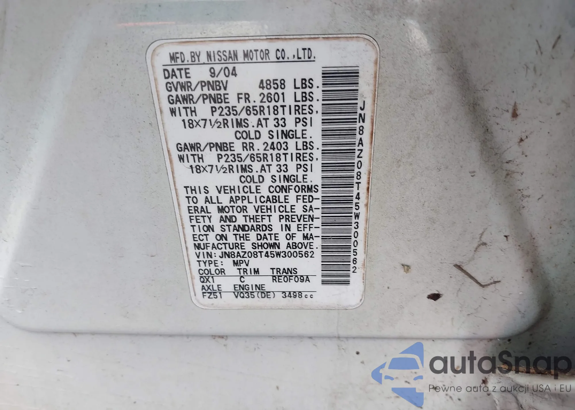 LOT: 43237697 VIN: 3A4FY58B97T544851