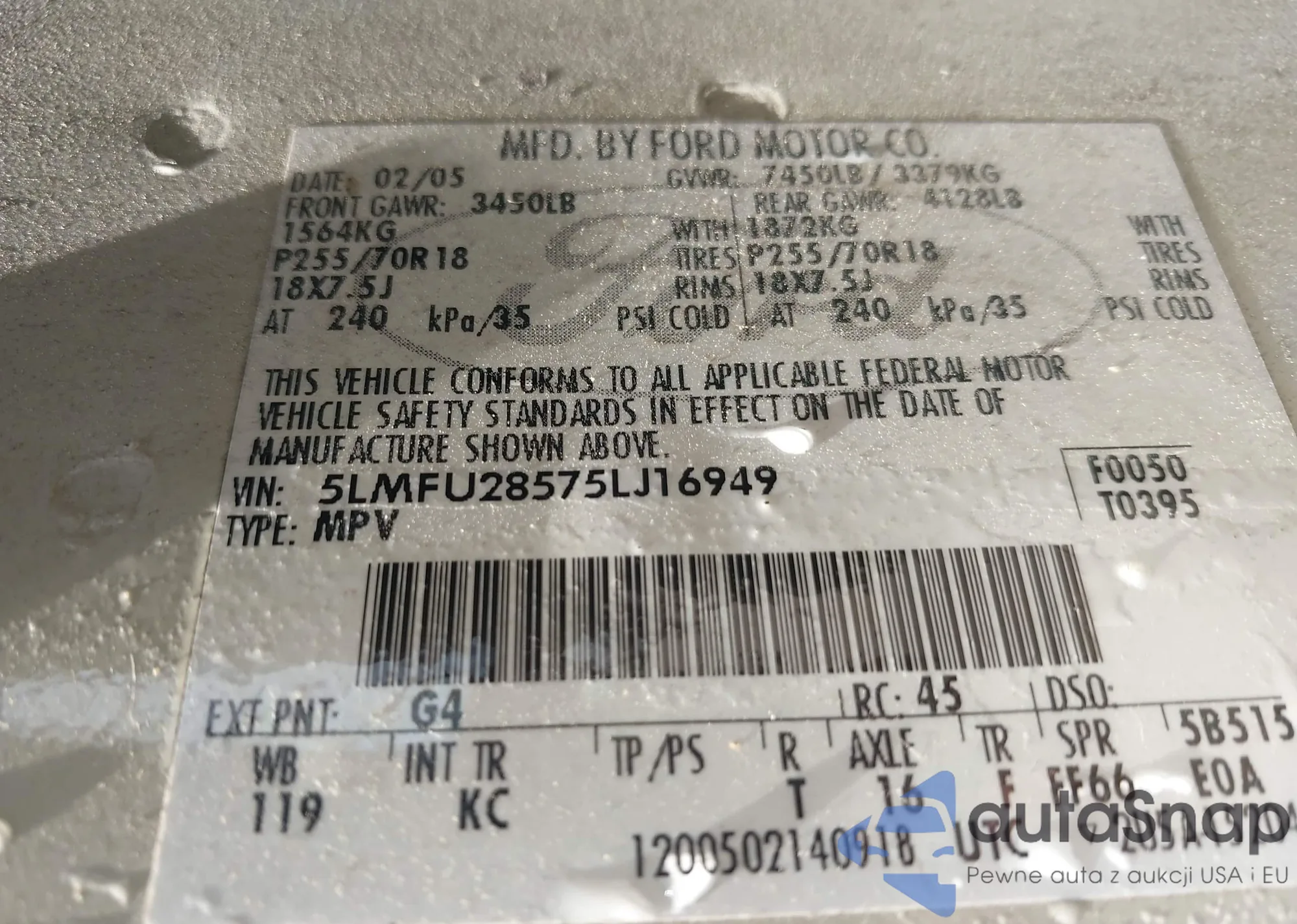 • VIN 5LMFU28575LJ16949