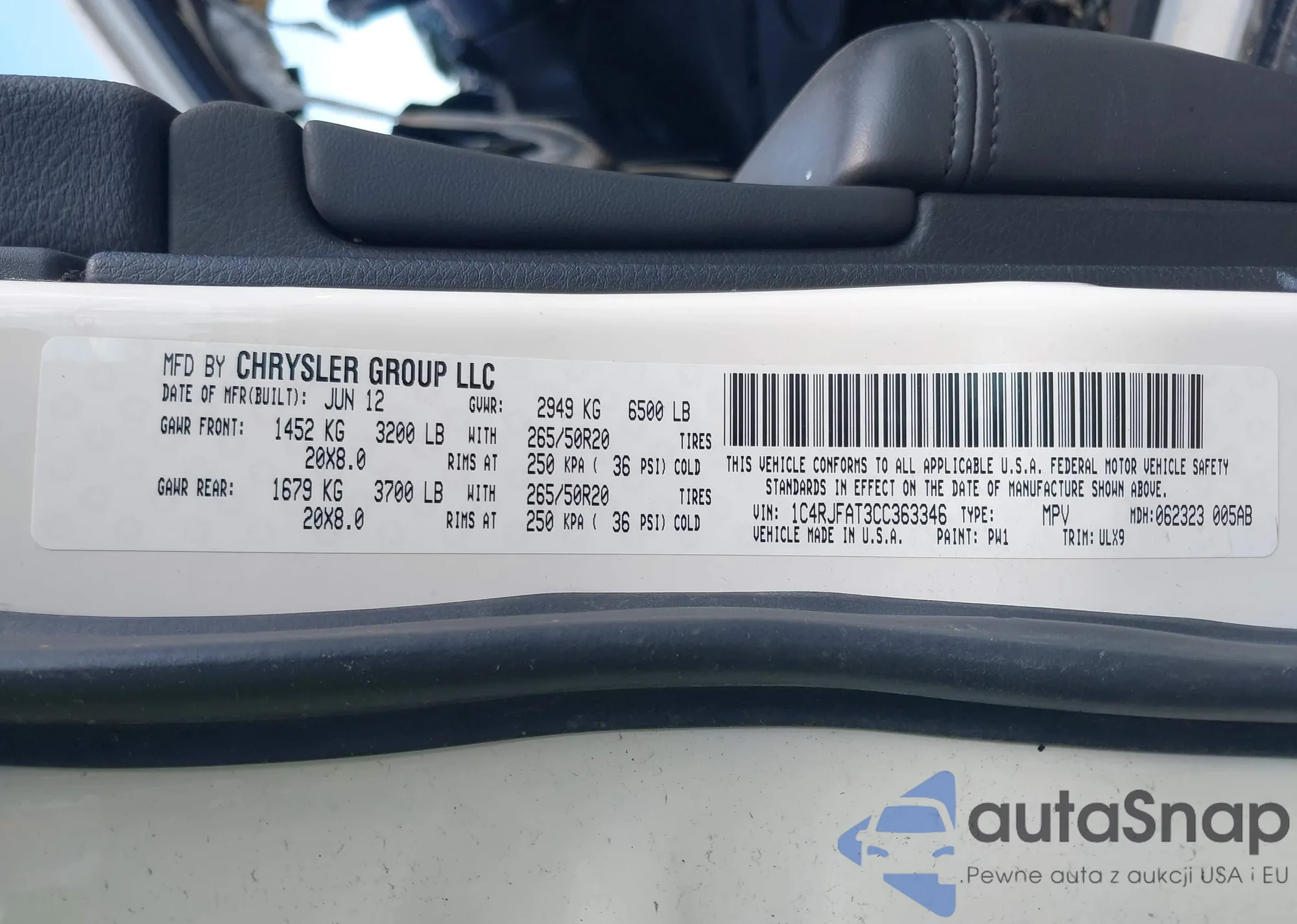 2012 Jeep Grand Cherokee Laredo from USA, damaged, VIN 1C4RJFAT3CC363346