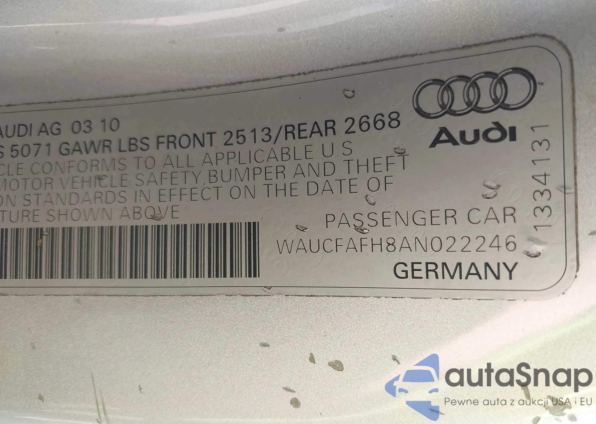 • VIN WAUCFAFH8AN022246
