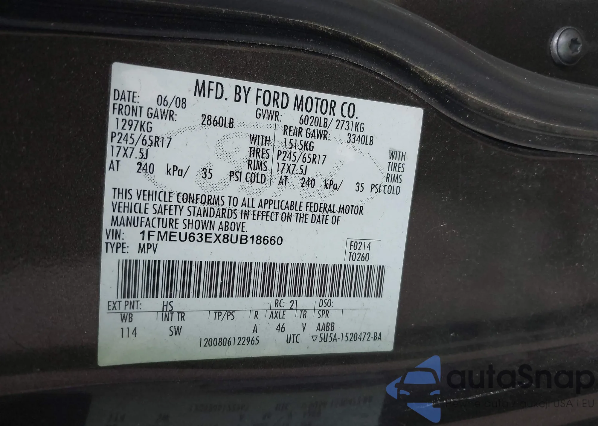 • VIN 1FMEU63EX8UB18660